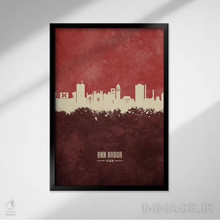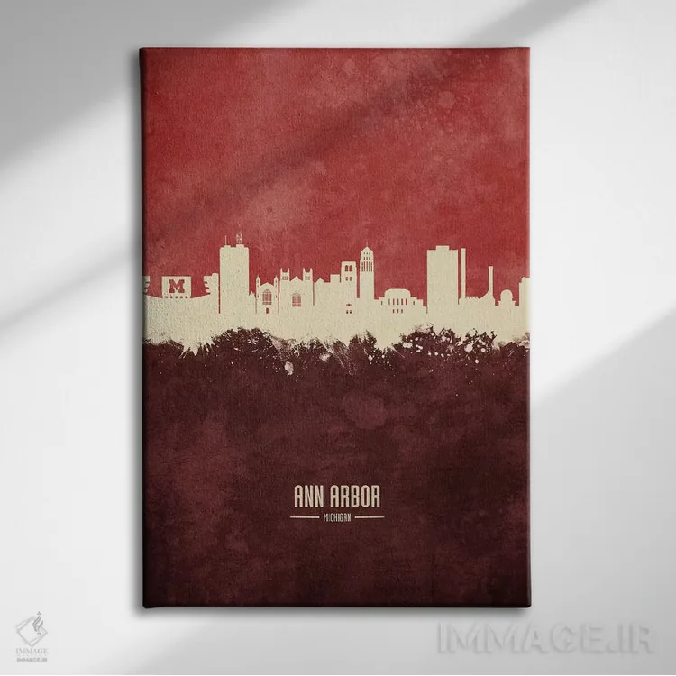 «منظره خط افق ان آربر میشیگان (زرشکی)» اثرِ «مایکل تامپست» یک لهجهی مدرن برای ترکیبهای خاکستری/سفید و نور سرد است.