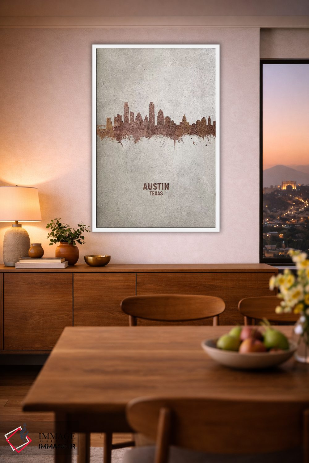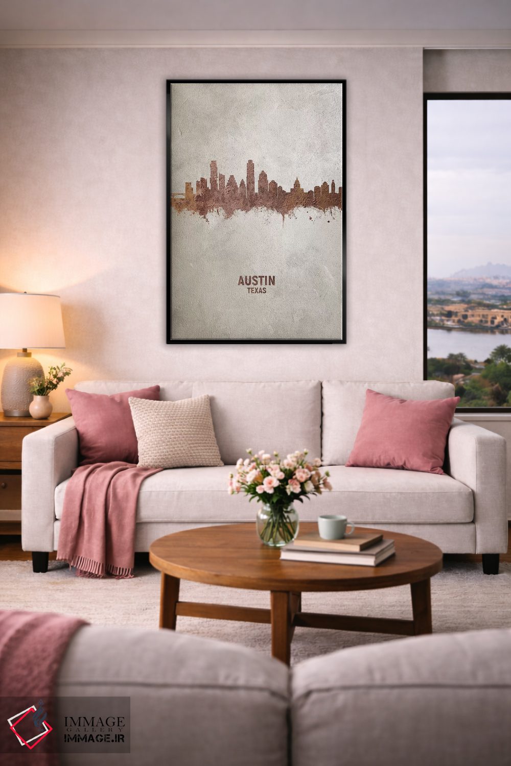 «منظره خط افق آستین تگزاس (زنگاری)» اثرِ «مایکل تامپست» با زبانِ هنری و موضوعِ این اثر، انتخابی مناسب برای فضاهای مدرن و چیدمانهای امروزی است.