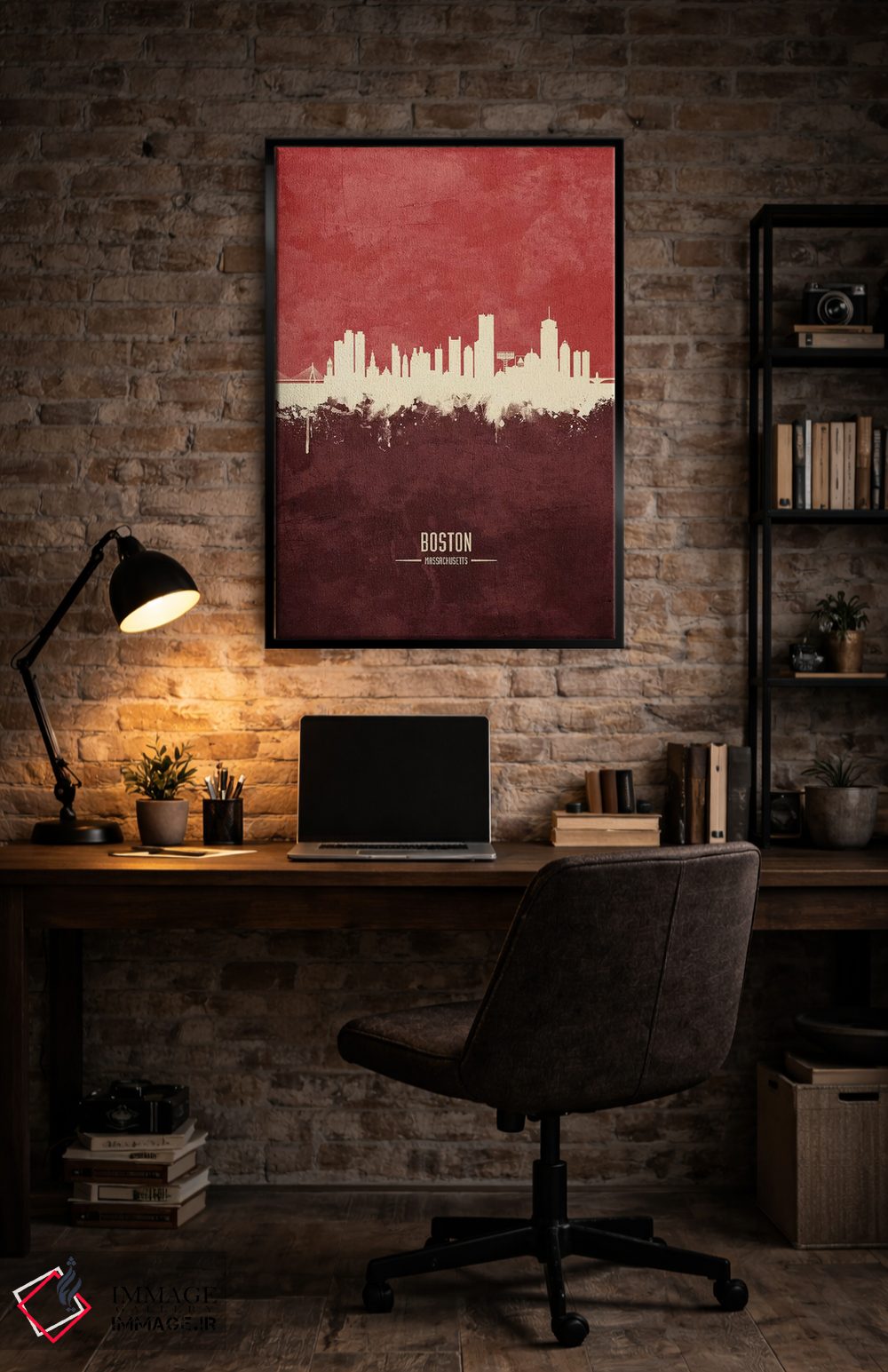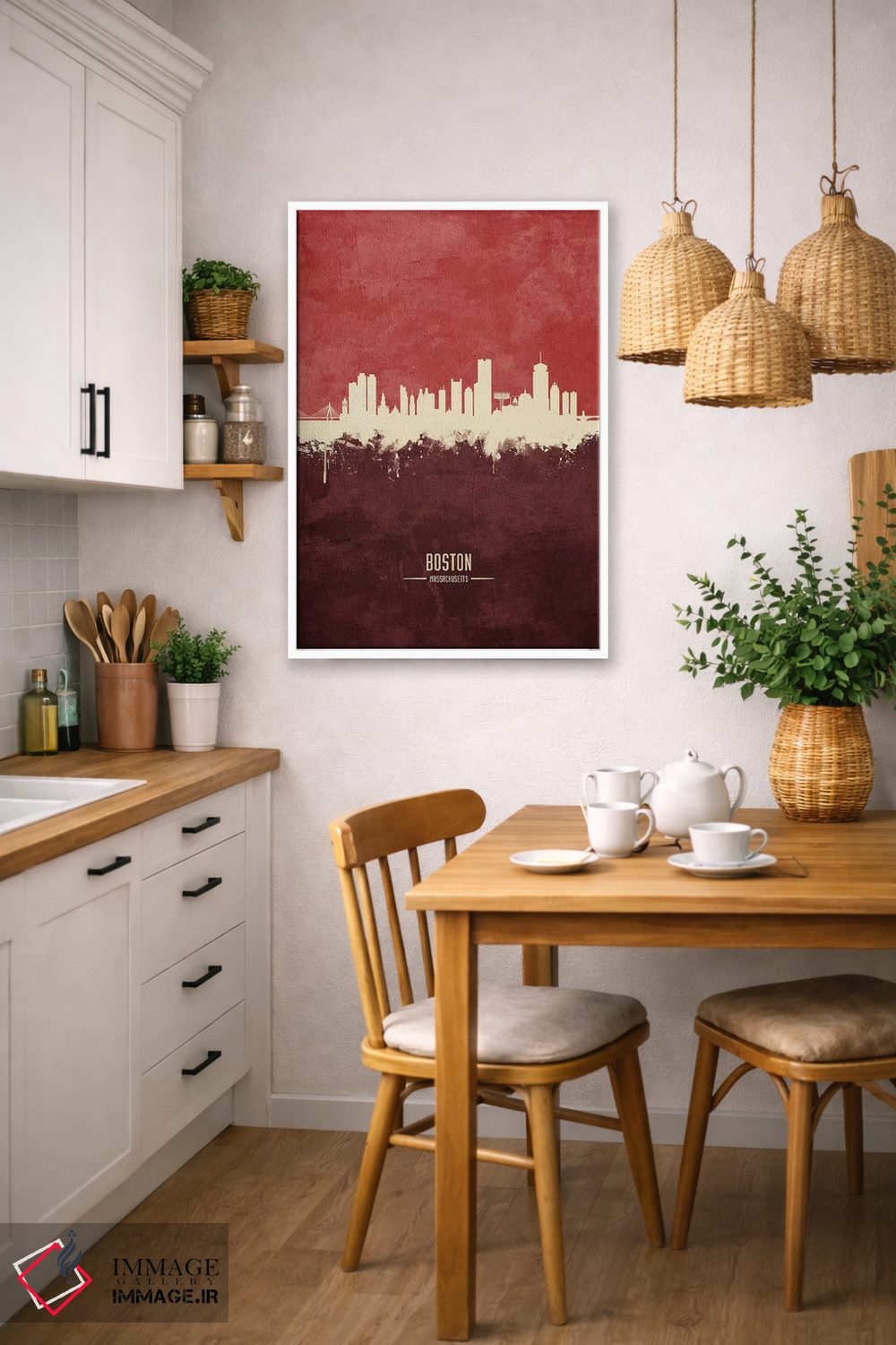 اگر میخواهی یک قاب متفاوت اما حرفهای داشته باشی، «خط افق بوستون ماساچوست بورگاندی (زرشکی)» اثرِ «مایکل تامپست» با موضوعِ این اثر و اجرای هنری انتخاب خوبی است.