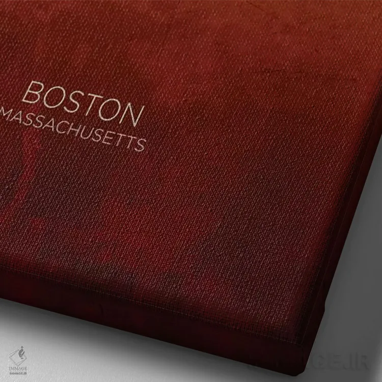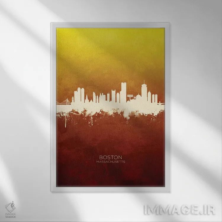 تابلو دکوراتیو خط افق بوستون ماساچوست قرمز و طلایی اثر مایکل تامپست