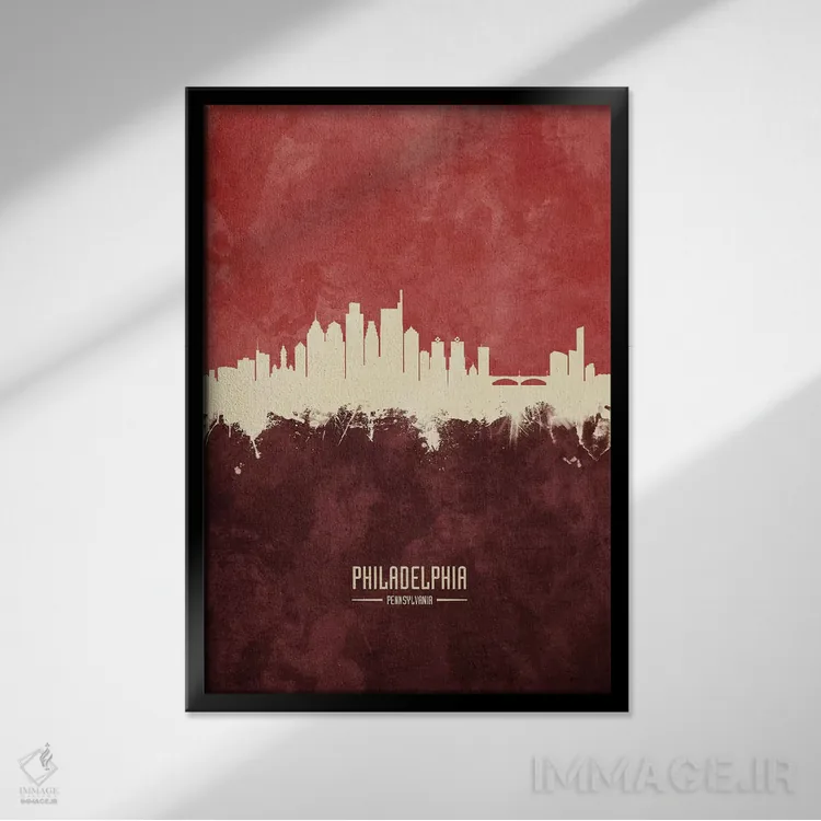 تابلو دکوراتیو خط افق فیلادلفیا بورگاندی اثر مایکل تامپست