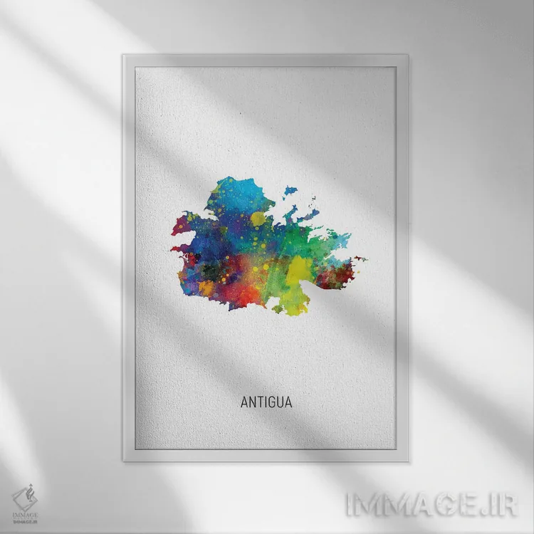 تابلو دکوراتیو نقشه آنتیگوا اثر مایکل تامپست - نمای قاب‌دار سفید