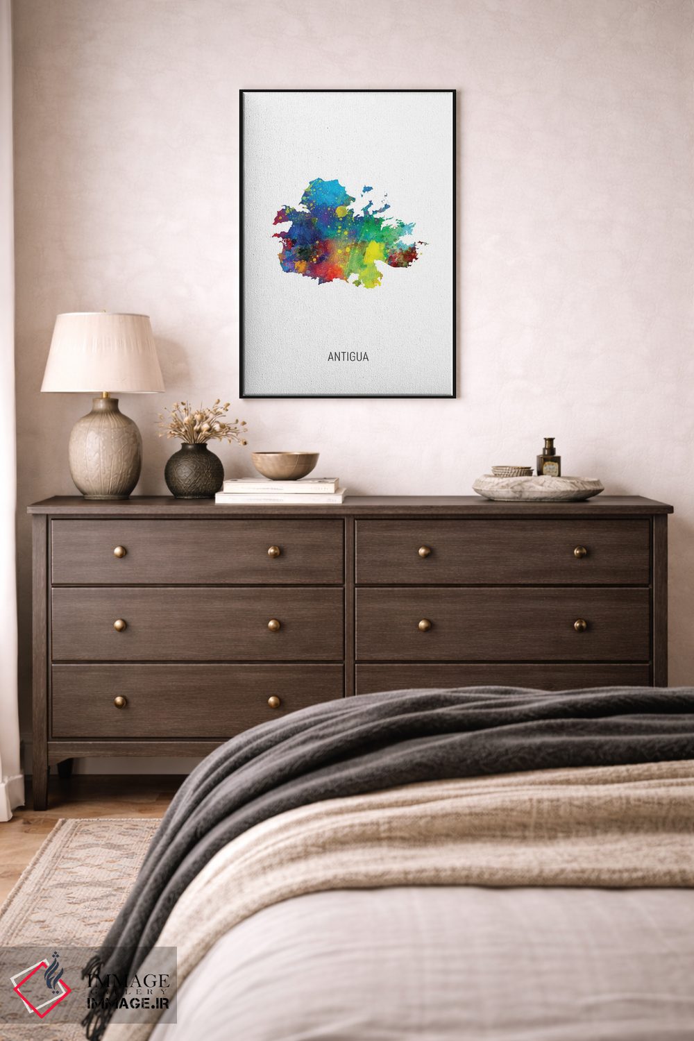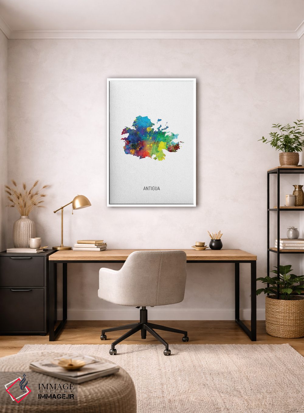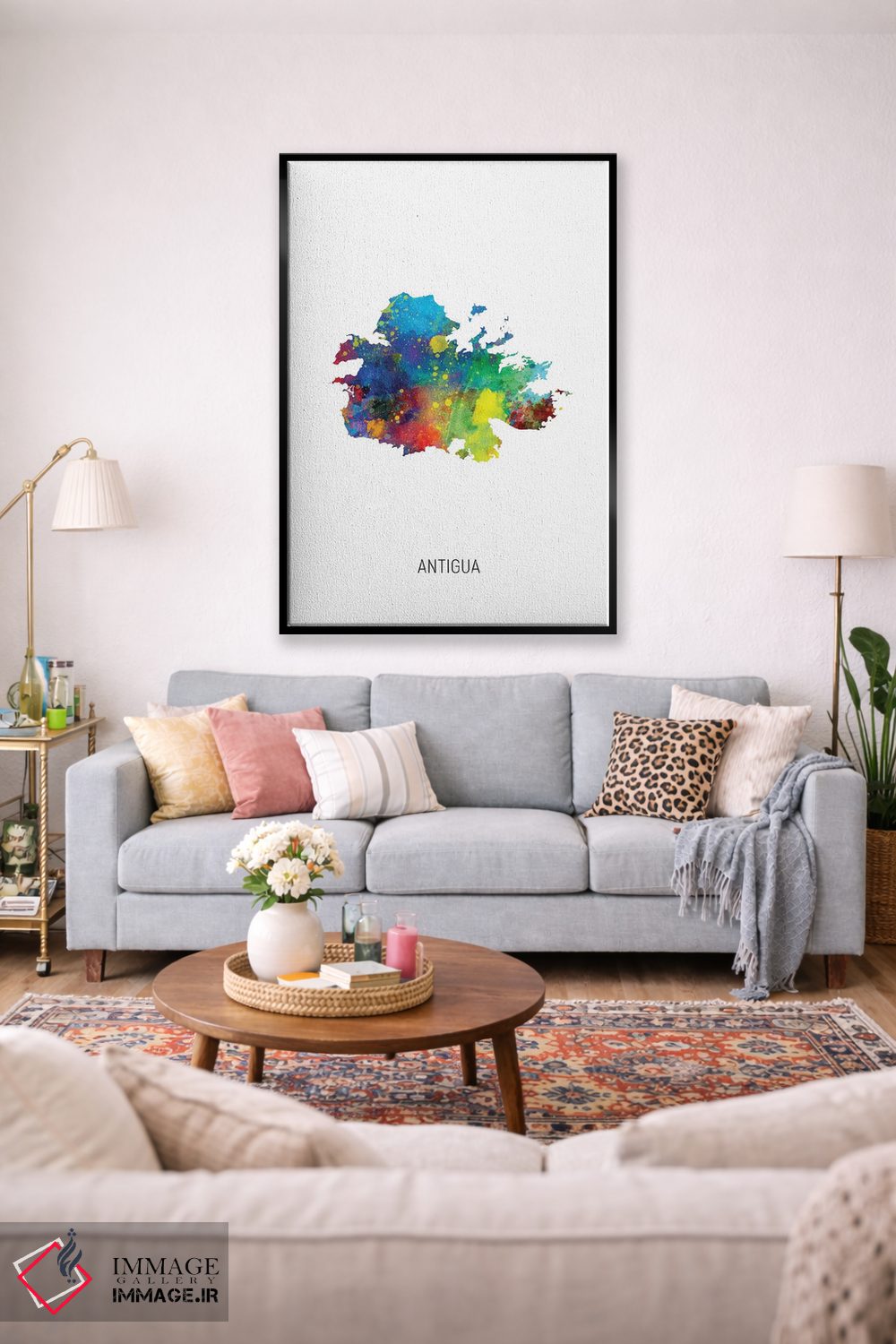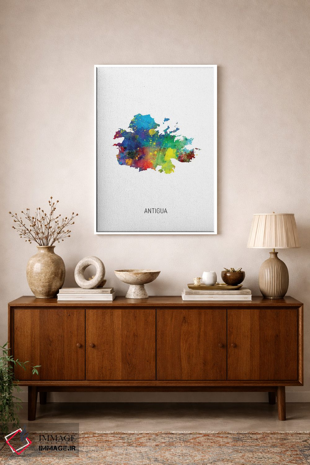 تابلو دکوراتیو نقشه آنتیگوا اثر مایکل تامپست - نمای روبه‌رو روی دیوار