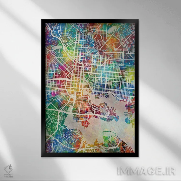 یک انتخاب مدرن، با روایتی مینیمال و مرتب—«نقشه بالتیمور مریلند (رنگی)» اثرِ «مایکل تامپست».