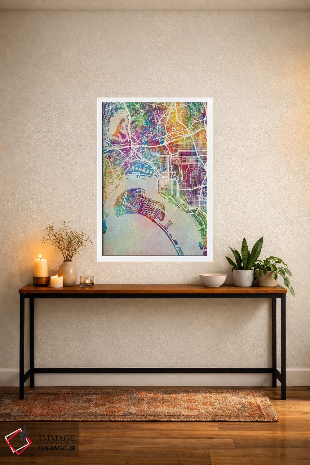«نقشه سندیهگو (رنگی)» اثرِ «مایکل تامپست» با سبک هنری و موضوعِ این اثر، یک انتخاب مدرن و تمیز برای دکور امروز است.