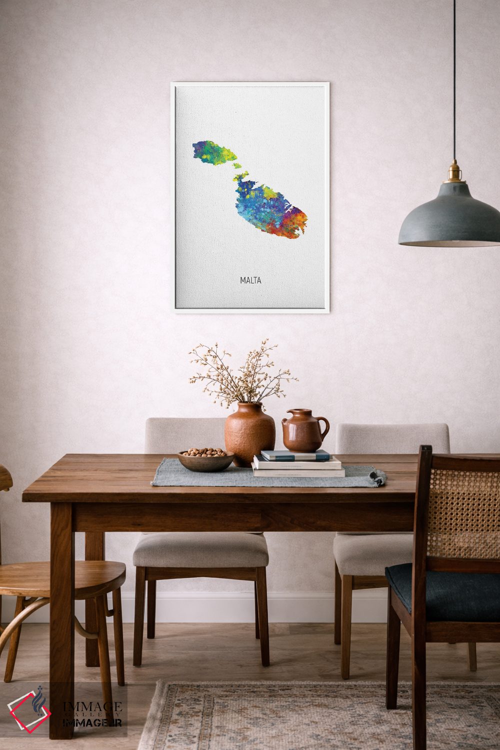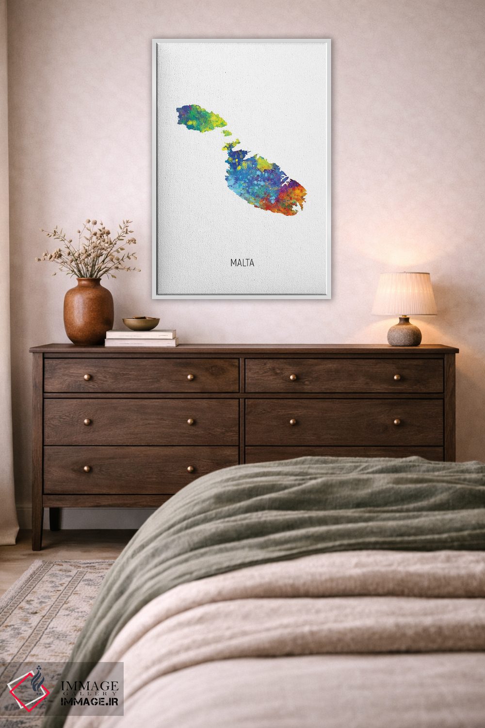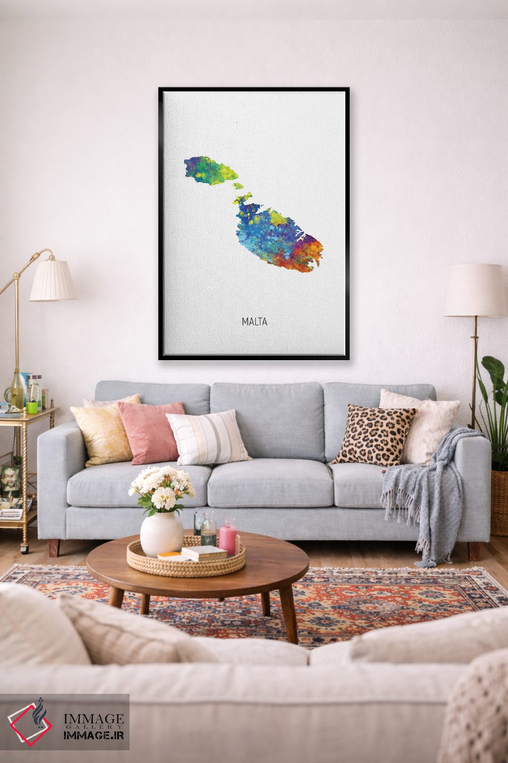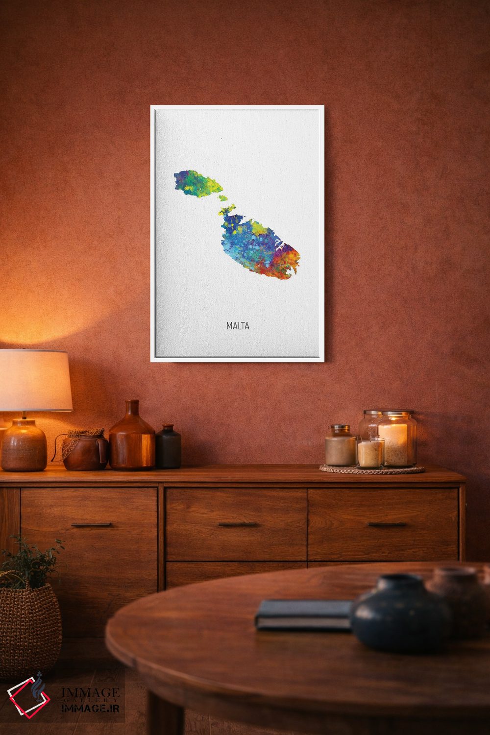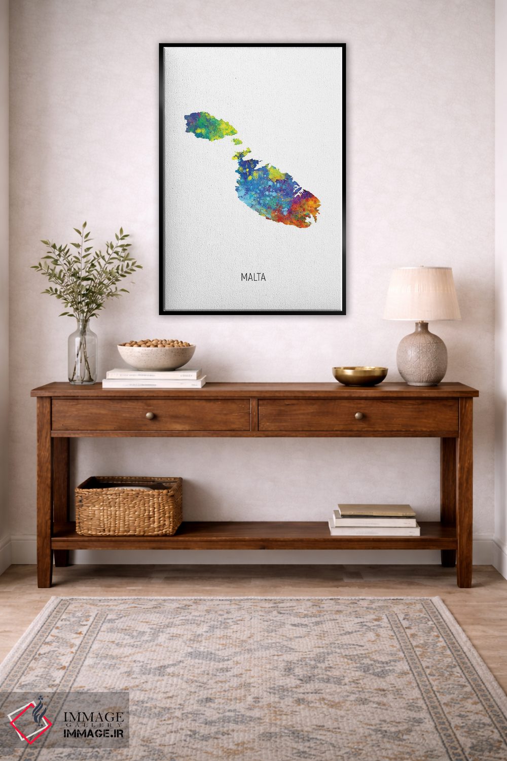 در «نقشه مالت» اثرِ «مایکل تامپست»، توجه به جزئیاتِ گرافیکی و تعادل رنگی دیده میشود؛ مناسب برای دیوار شاخص.