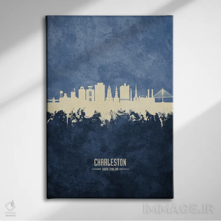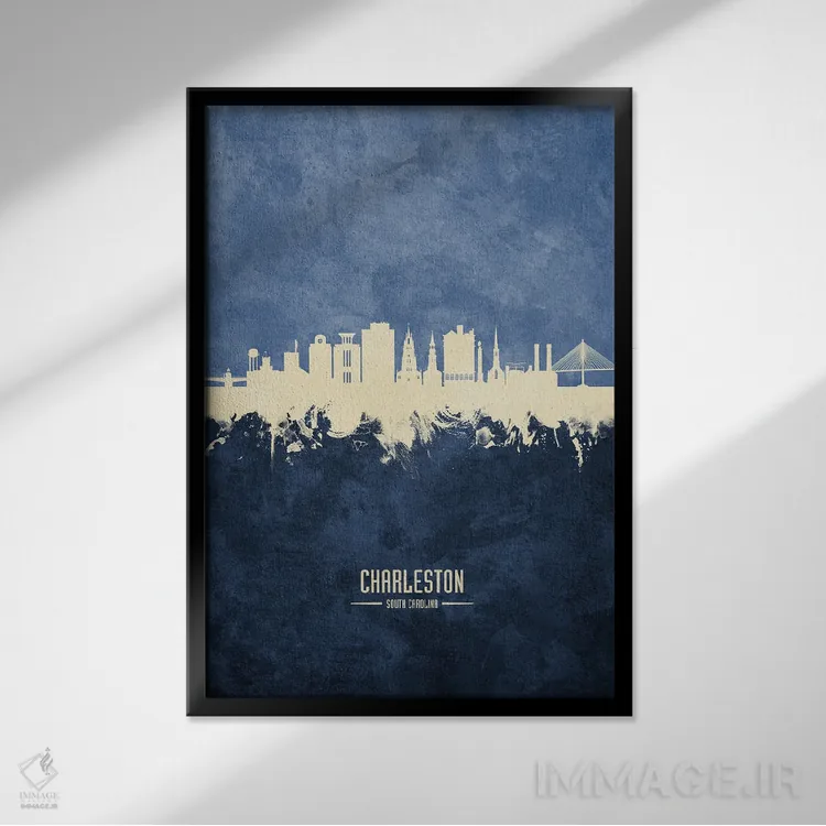 تابلو دکوراتیو نمای افق چارلستون، کارولینای جنوبی با رنگ سرمه ای اثر مایکل تامپست
