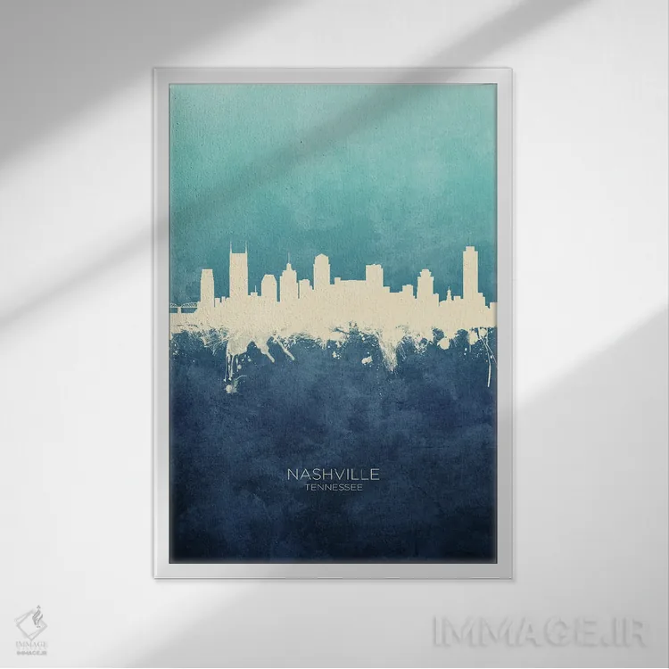تابلو دکوراتیو نمای افق نشویل، تنسی با رنگ سرمه ای و فیروزه ای اثر مایکل تامپست - نمای پرسپکتیو محصول