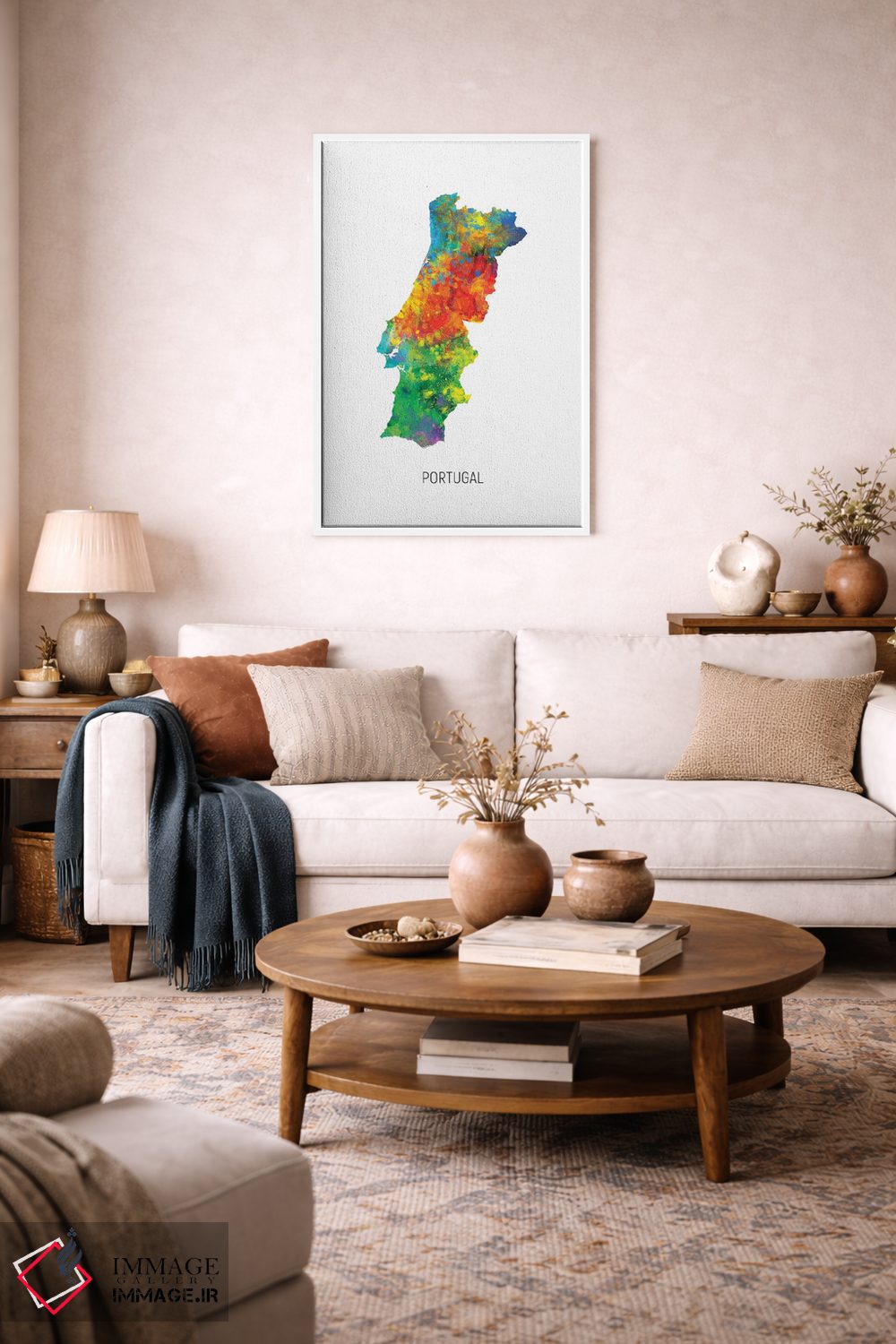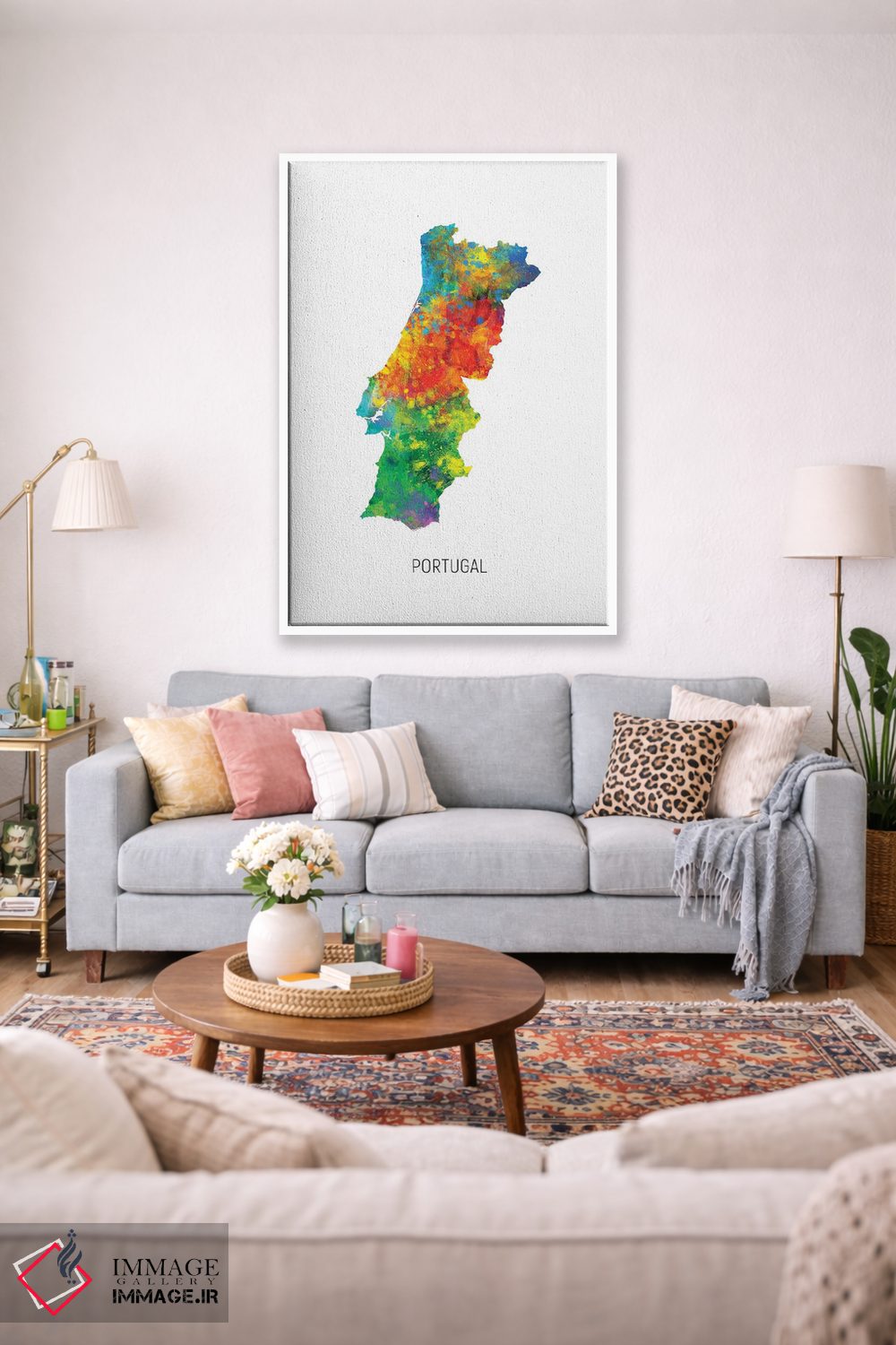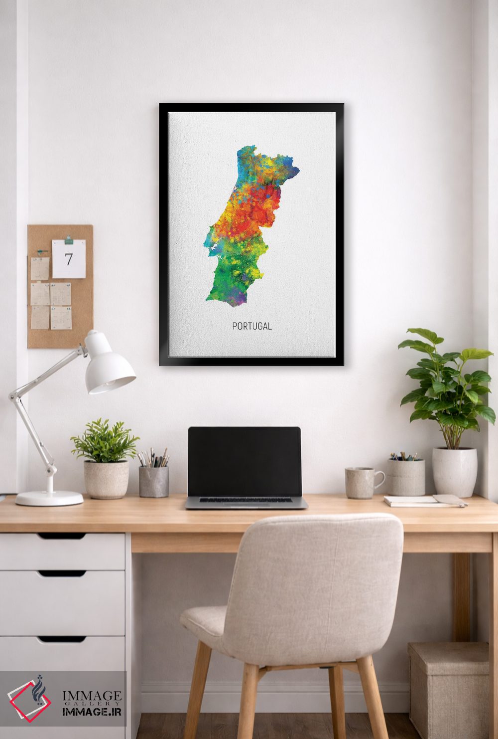 «نقشهٔ پرتغال» اثرِ «مایکل تامپست» یک قاب دکوراتیوِ گرم و دلنشین است؛ این اثر در اجرای پرداختِ هنری، فضا را نرمتر و صمیمیتر نشان میدهد.