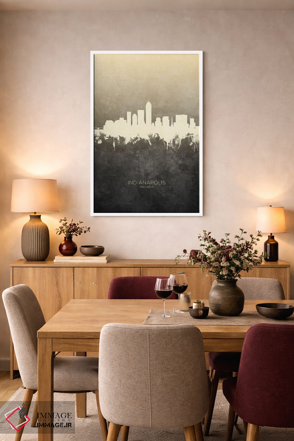 اگر دنبال یک کار گلوگیاهِ شیک و قابل ست هستید، «خط افق ایندیاناپولیس ایندیانا با رنگ تاپ (قهوهای خاکستری)» اثرِ «مایکل تامپست» انتخابی امن و زیباست.