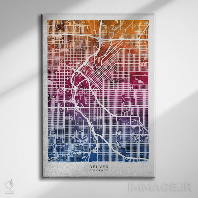 «نقشه دنور آبی—صورتی» اثرِ «مایکل تامپست» برای دفتر کار، اتاق کار یا فضای تکنولوژیمحور عالی مینشیند.