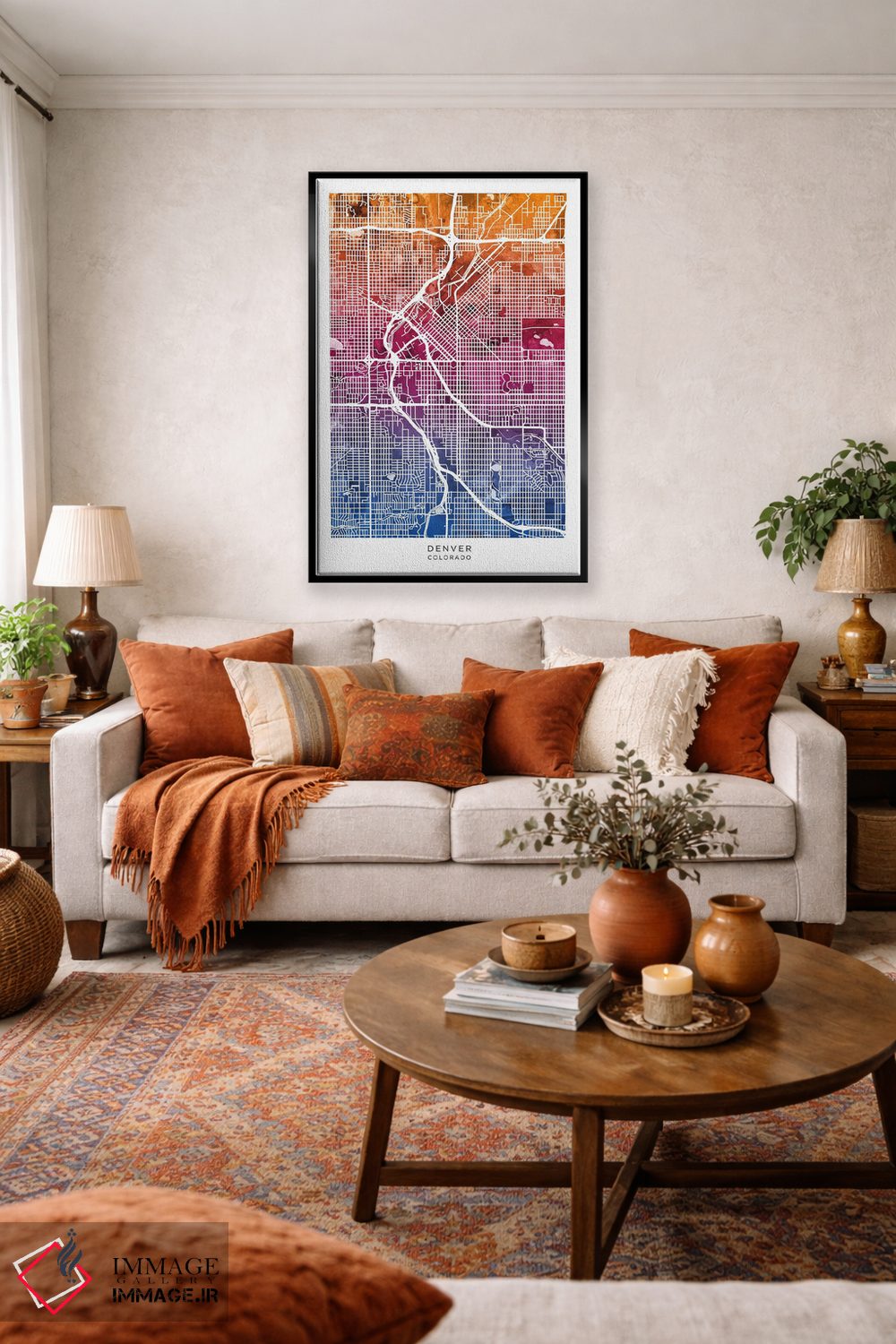 تابلو دکوراتیو نقشه دنور آبی-صورتی اثر مایکل تامپست