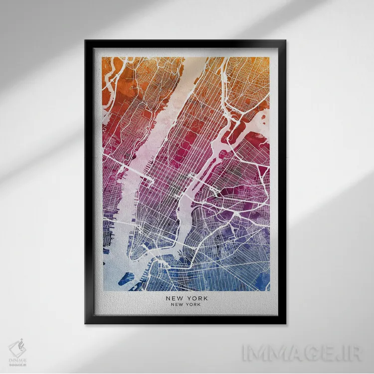 تابلو دکوراتیو نقشه نیویورک آبی-صورتی اثر مایکل تامپست