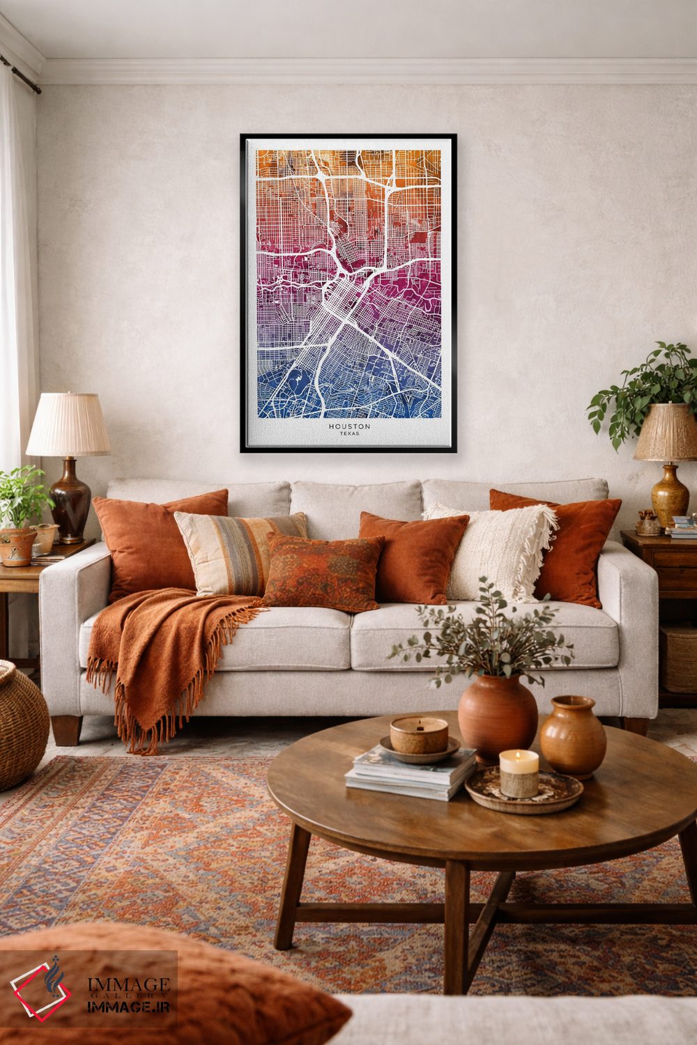 براساس پالت ترکیبی اثر، قاب تیک گرم (چوبی) پیشنهاد اول است و مشکی مات (فریم متوسط) مکمل. برای سفارشهای پروژهای با ابعاد و قابهای اختصاصی با ایماژ در تماس باشید.