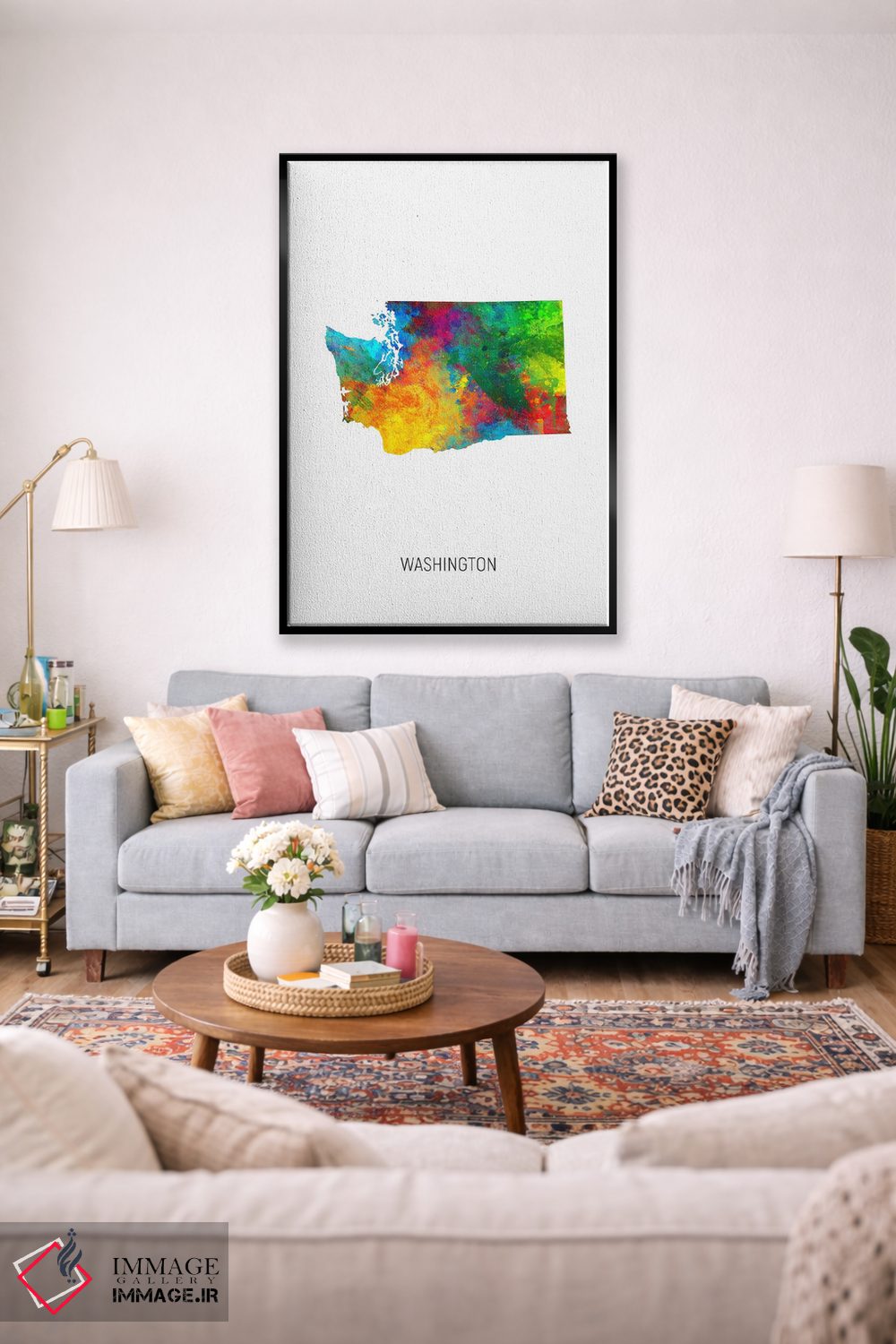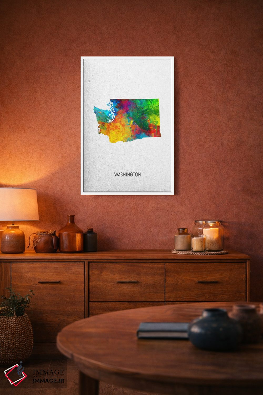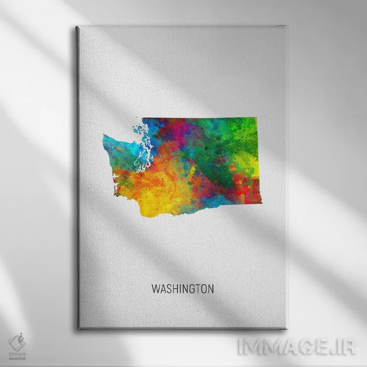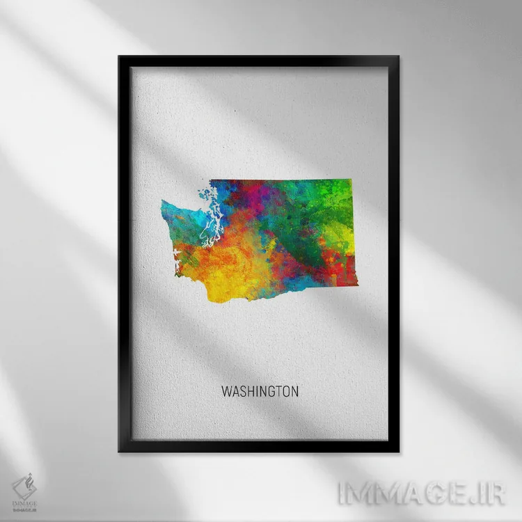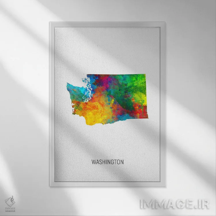 در «نقشهٔ واشینگتن (ایالت)» اثرِ «مایکل تامپست»، توجه به جزئیاتِ گرافیکی و تعادل رنگی دیده میشود؛ مناسب برای دیوار شاخص.