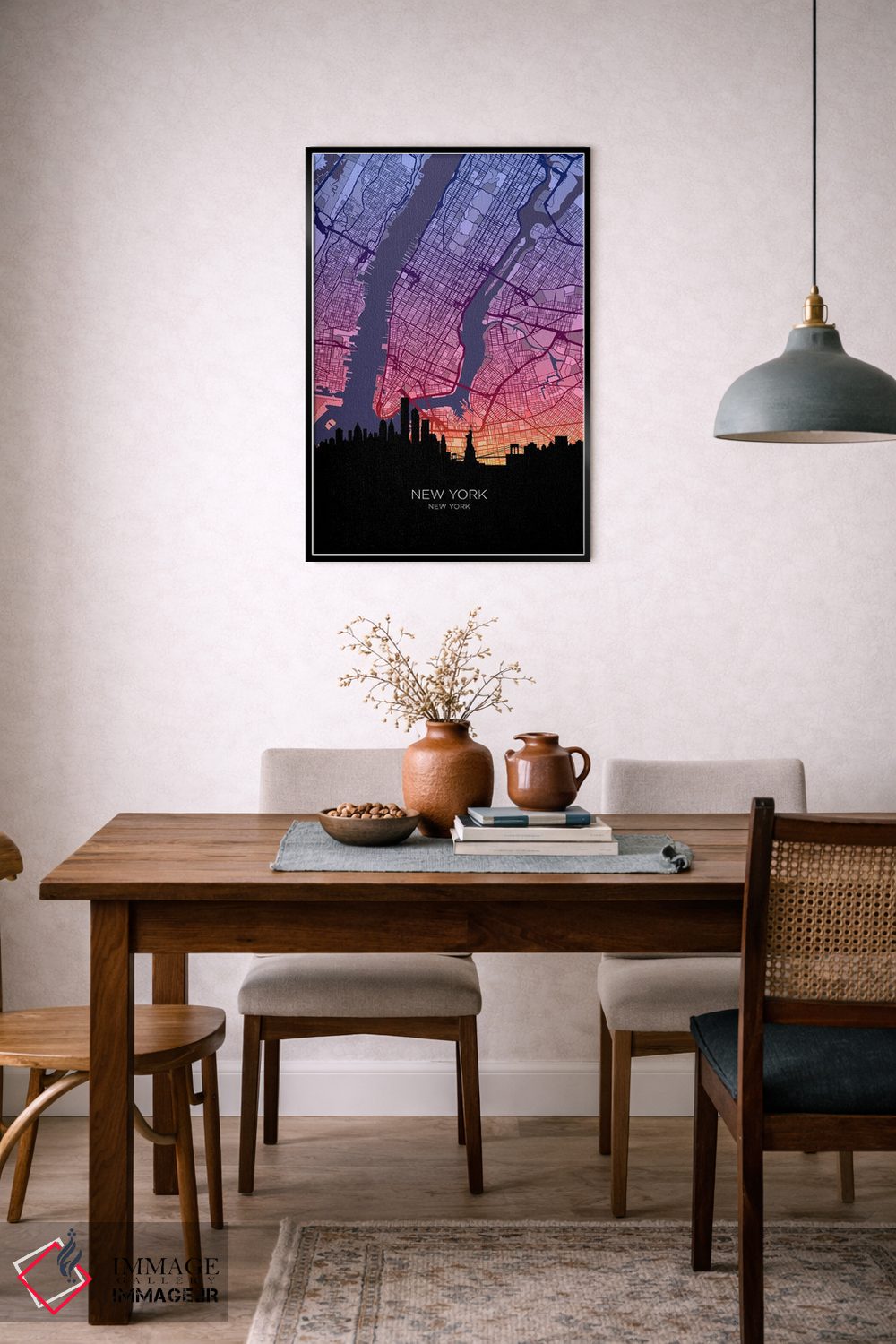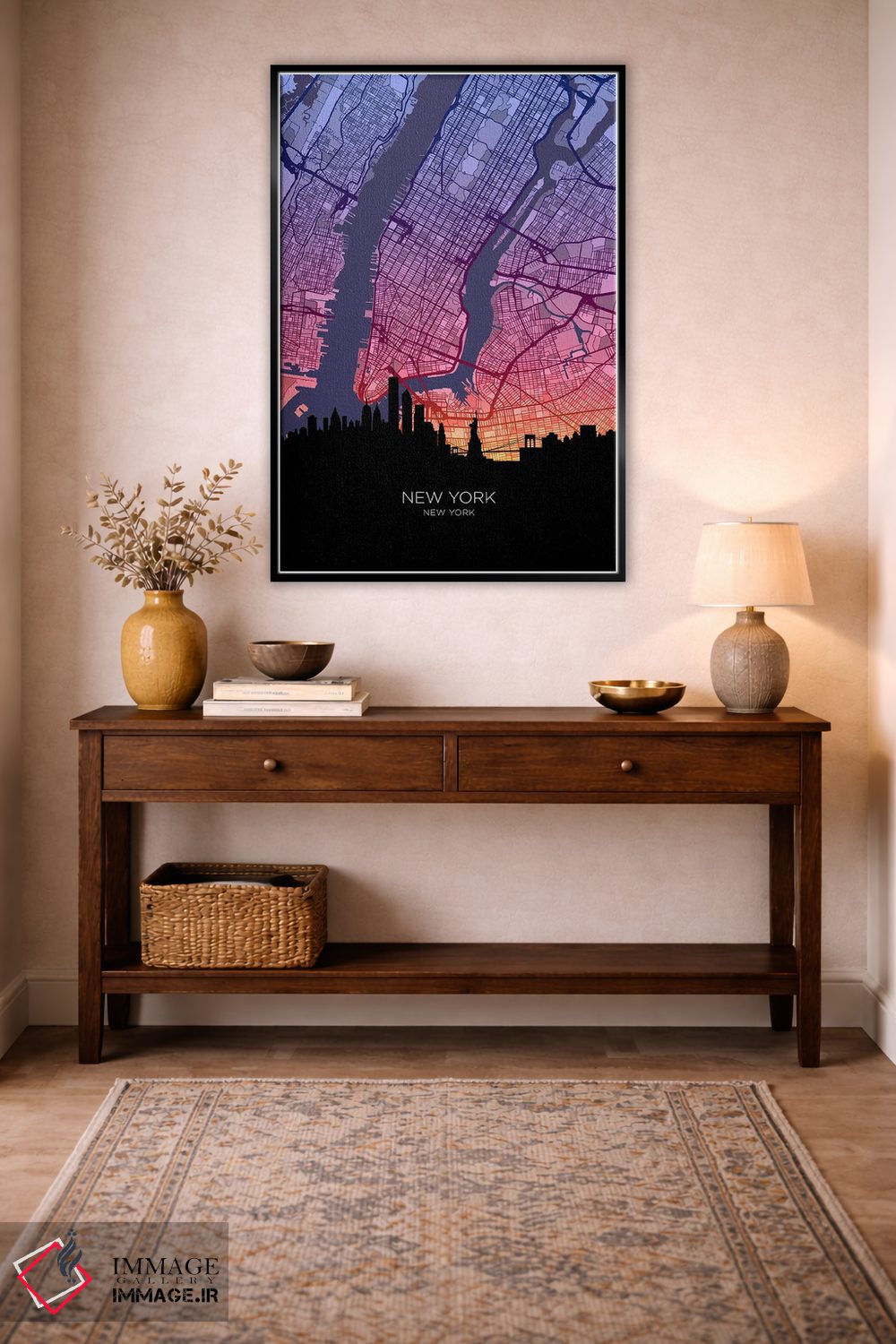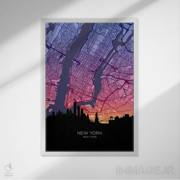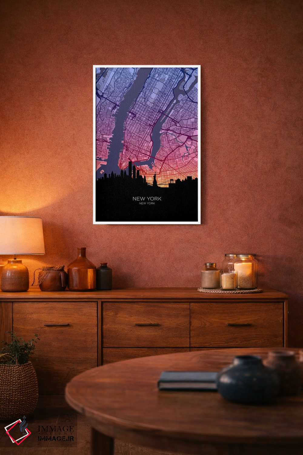 تابلو دکوراتیو نقشه خط افق نیویورک سیتی در غروب آفتاب اثر مایکل تامپست