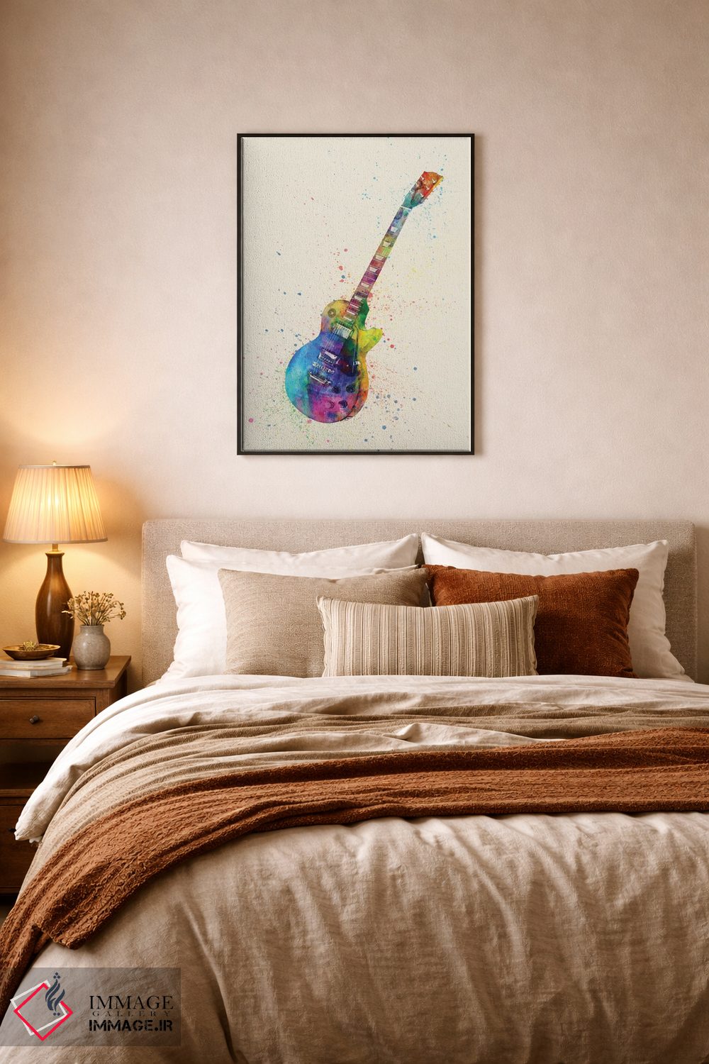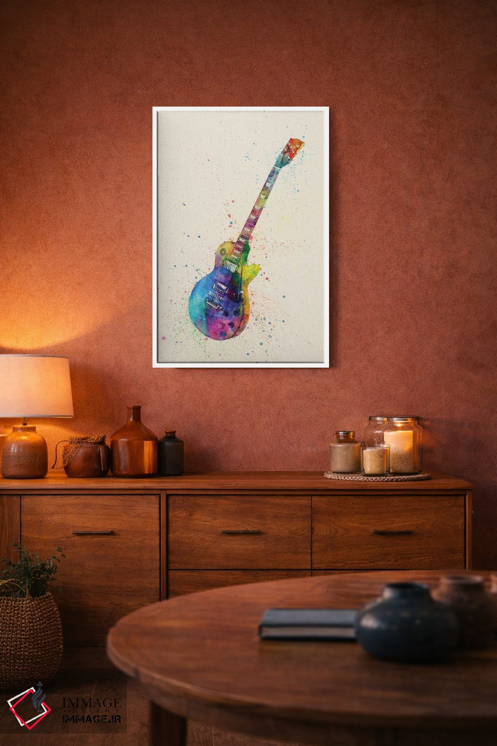 براساس پالت ترکیبی اثر، قاب تیک گرم (چوبی) پیشنهاد اول است و مشکی مات (فریم متوسط) مکمل. برای سفارشهای پروژهای با ابعاد و قابهای اختصاصی با ایماژ در تماس باشید.