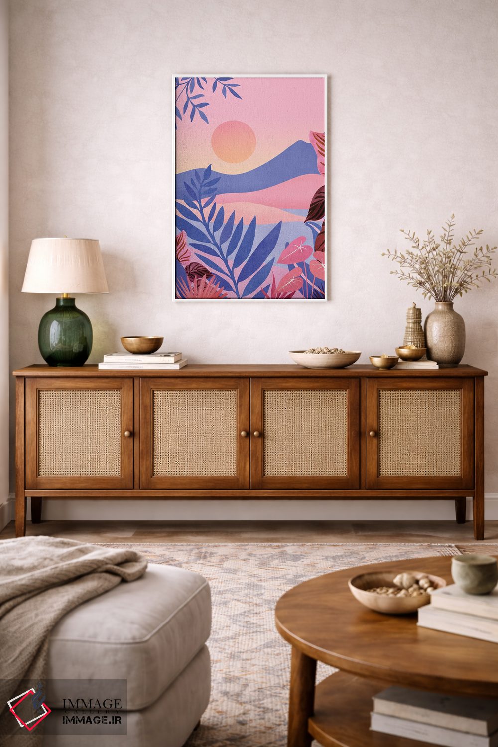 بوم گالری ایماژ نسخهی چیدماناتیوِ حرفهای از یک اثر هنری است؛ روی کنواس سفیدِ یکدست و بدون اسید با چاپ هنریِ دقیق (Giclée) برای گذارهای نرمتر و وضوح بالاتر با رنگدانههای آرشیوی و سیستم رنگ دقیق، خروجی، عمق رنگ و پرداختی است که «با چشم» دیده میشود.