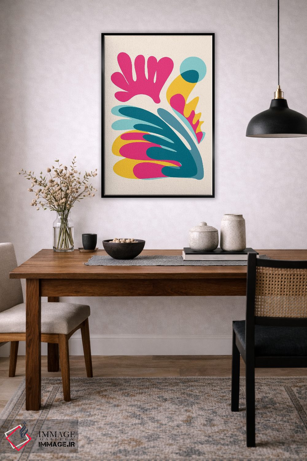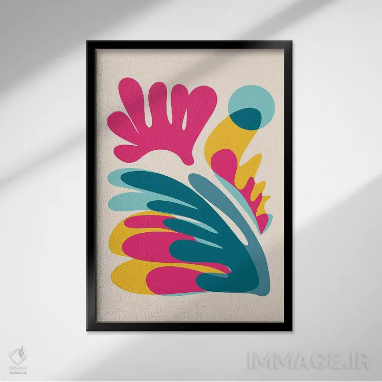 براساس پالت ترکیبی اثر، قاب تیک گرم (چوبی) پیشنهاد اول است و مشکی مات (فریم متوسط) مکمل. برای سفارشهای پروژهای با ابعاد و قابهای اختصاصی با ایماژ در تماس باشید.