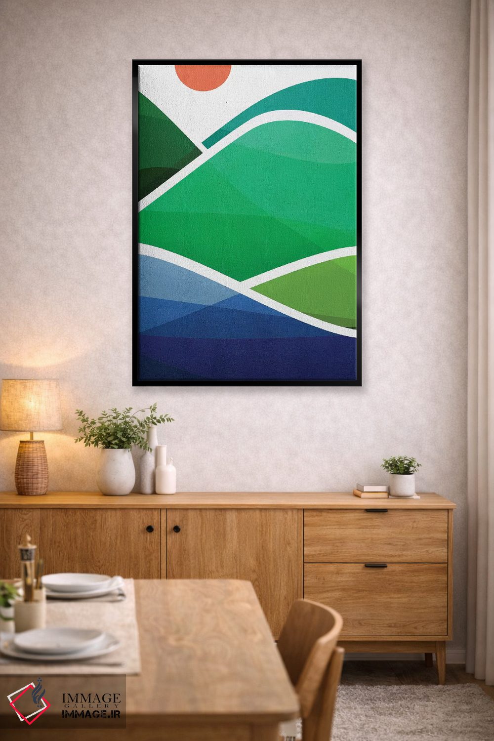 طراحی بوم گالری ایماژ بهگونهای است که اثر روی دیوار «پرداختشده» و حرفهای دیده شود—نه پرزرقوبرقِ بیپایه؛ بلکه دقیق و خوشپرداخت. بافت ظریف کنواس کمک میکند حس اثر هنری را در نگاه نزدیک نگه میدارد و در چیدمانهای مدرن و کمینهگرا خیلی خوب مینشیند. با کنترل تونها، تعادل بهتری بین نور و رنگ ایجاد میکند و در دکورهای مدرن و مینیمال خیلی خوب مینشیند. اگر دوست دارید قاب هم اضافه شود، میتوانید از گزینههای سایت استفاده کنید یا برای انتخاب سفارشی هماهنگ کنید؛ و اگر بخواهید، میتوان چیدمان را برای گالریوال هم پیشنهاد داد. در دیوارهای خنثی (سفید، کرم، طوسی روشن) اثر تمیزتر خودش را نشان میدهد.