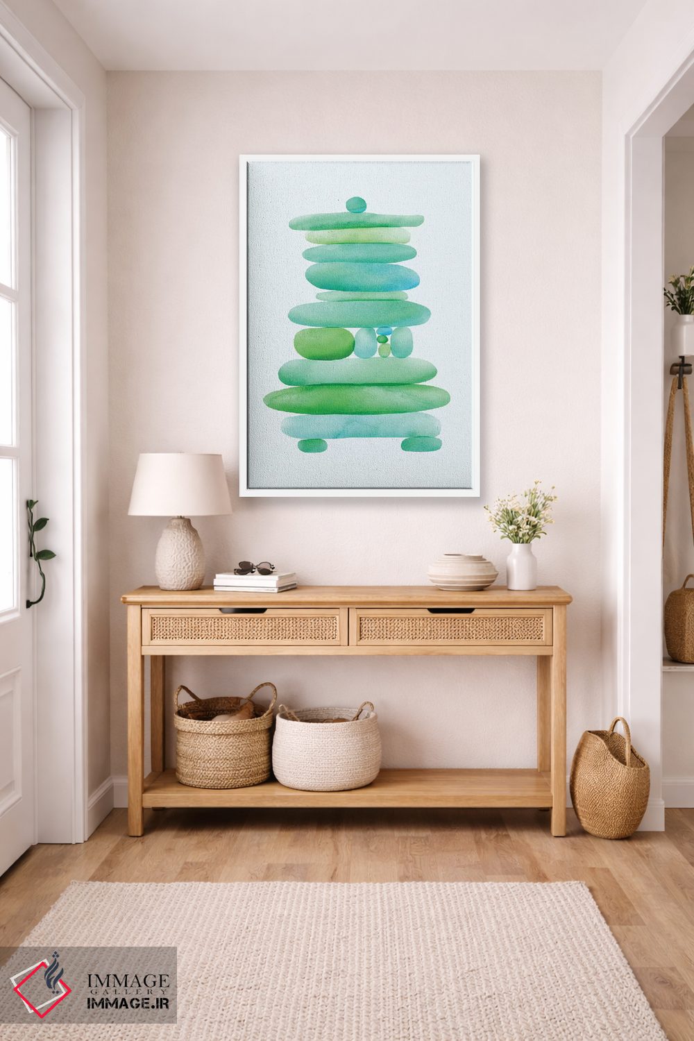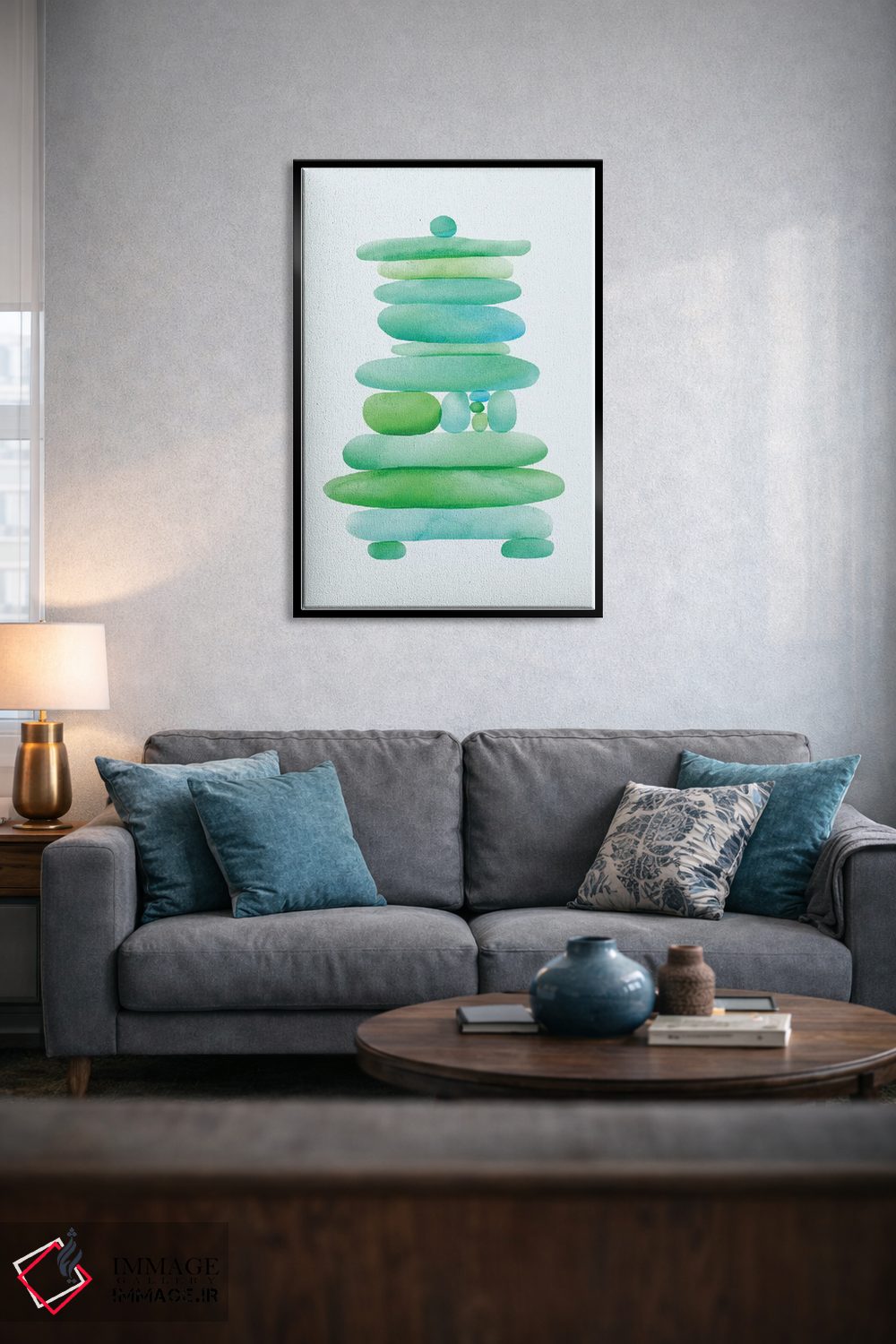 تابلو مینیمال توده سنگی شیشه دریایی اثر مدرن تروپیکال