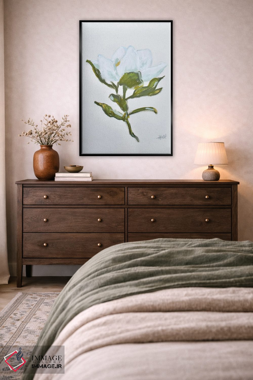 برای اتاق خواب و نشیمنهای آرام، «ماگنولیا» اثرِ «آپریل موفات» مثل یک قطعهٔ دکورِ همیشهبهروز عمل میکند؛ برای فضای غذاخوری انتخابی خوشسلیقه است. جزئیاتش از نزدیک هم ارزش تماشا دارد.