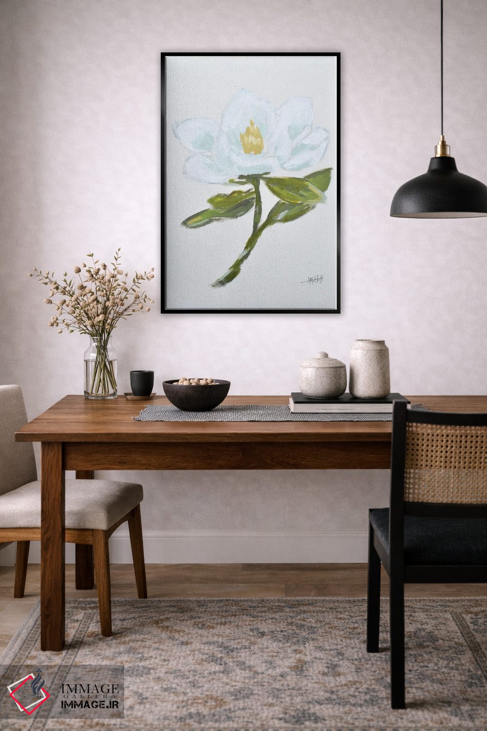 برای فضاهایی که به لطافت نیاز دارند، «ماگنولیا» اثرِ «آپریل موفات» حس طراوت را بدون شلوغی وارد اتاق میکند؛ برای فضاهای بوهمی انتخابی خوشسلیقه است. اگر دنبال «زیباییِ بیصدا» هستید، این اثر همان حس را دارد.