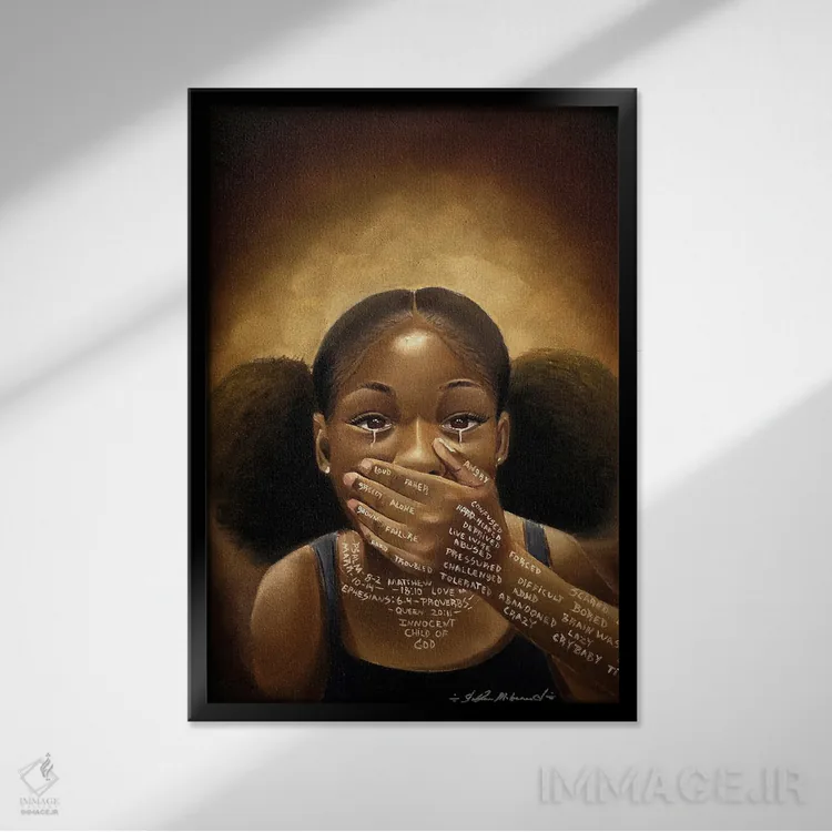 تابلو دکوراتیو واژه هایی که هرگز نگفتیم اثر سلام محمد - نمای قاب‌دار مشکی
