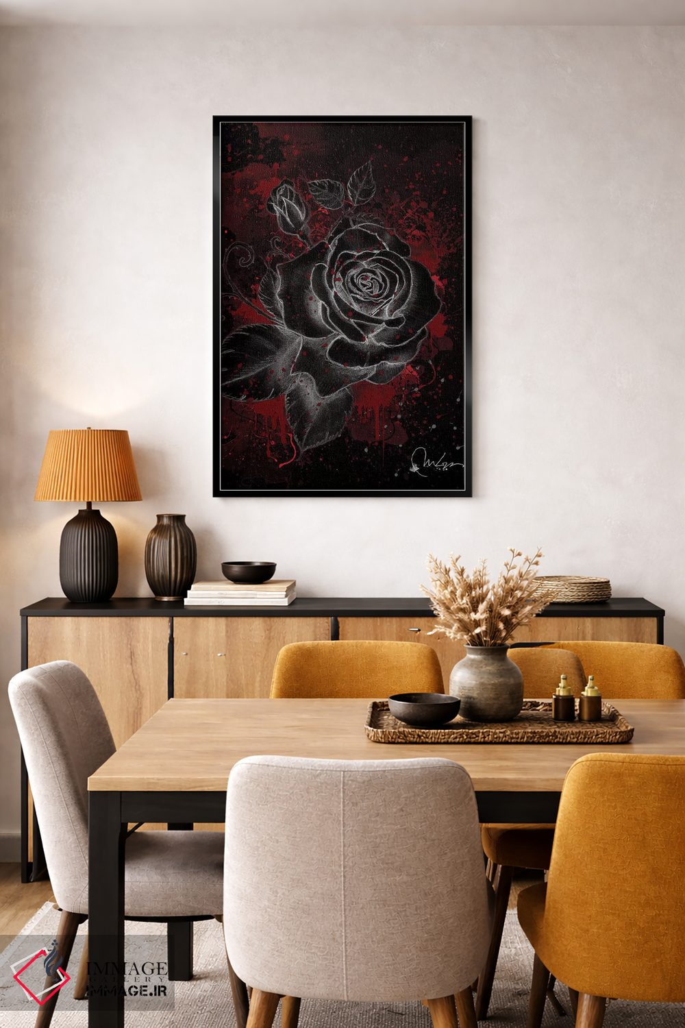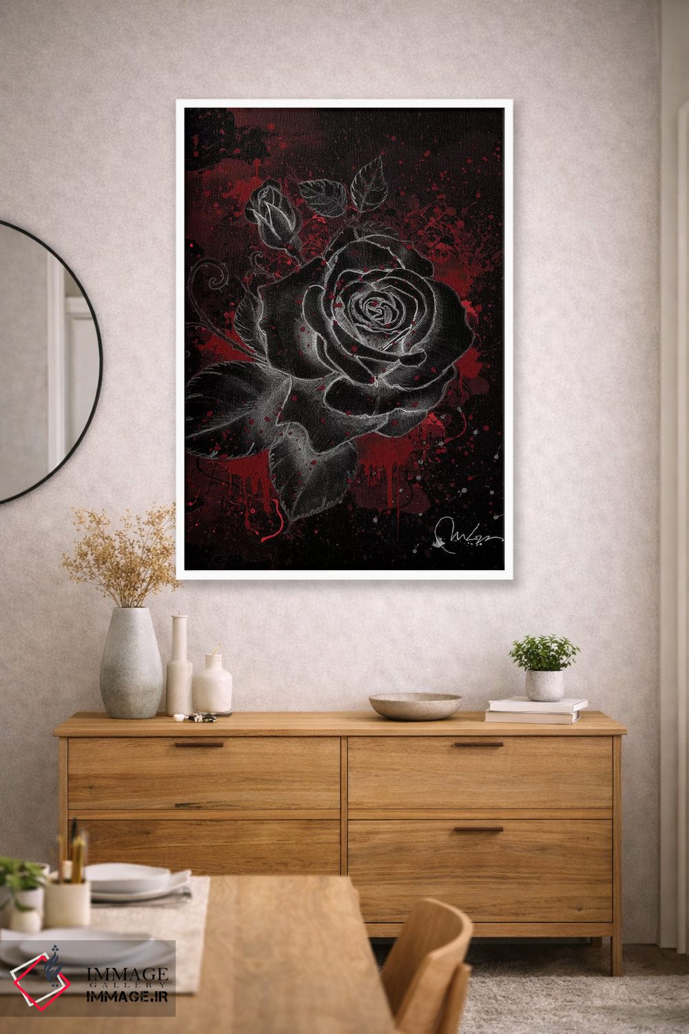 تابلو دکوراتیو رز سیاه اثر مارین لوپ - نمای روبه‌رو روی دیوار