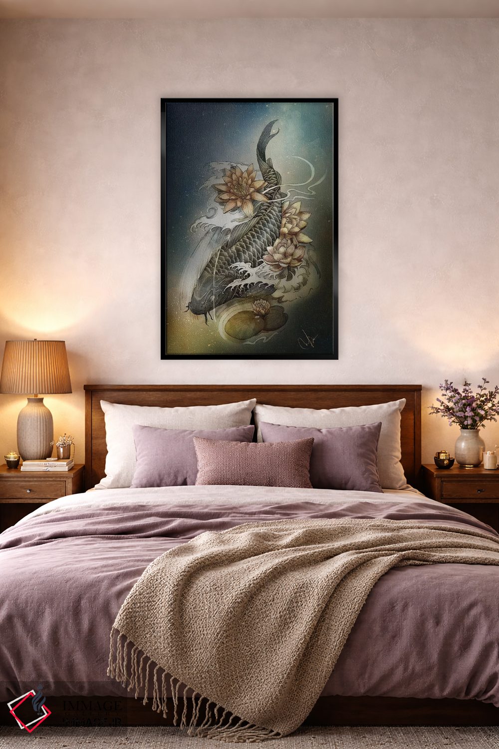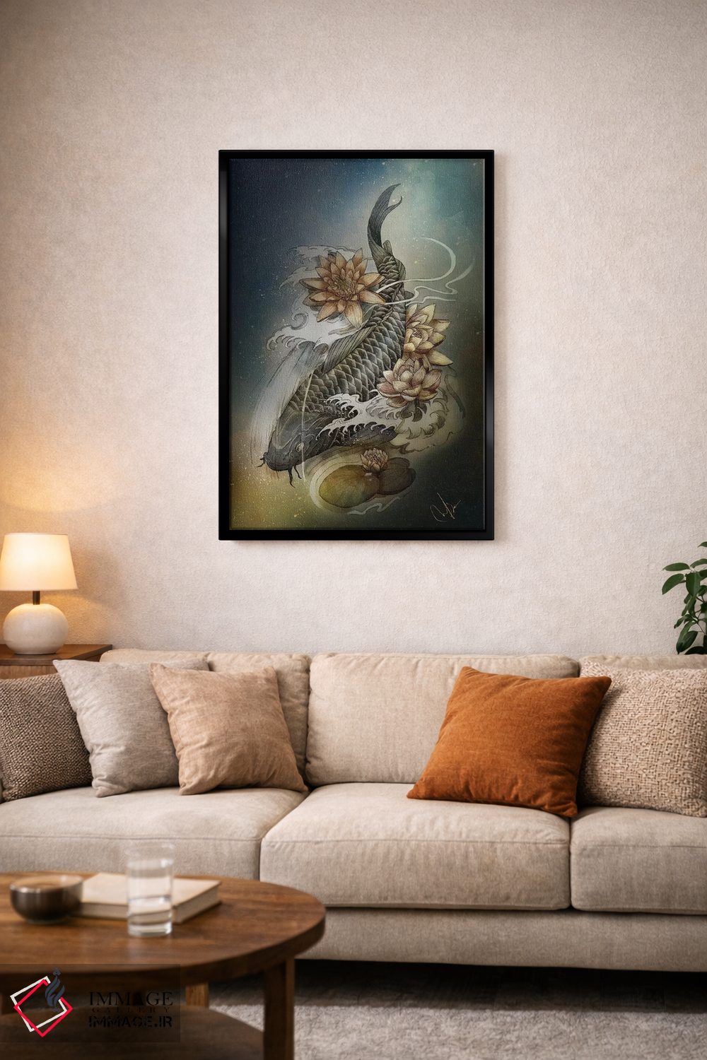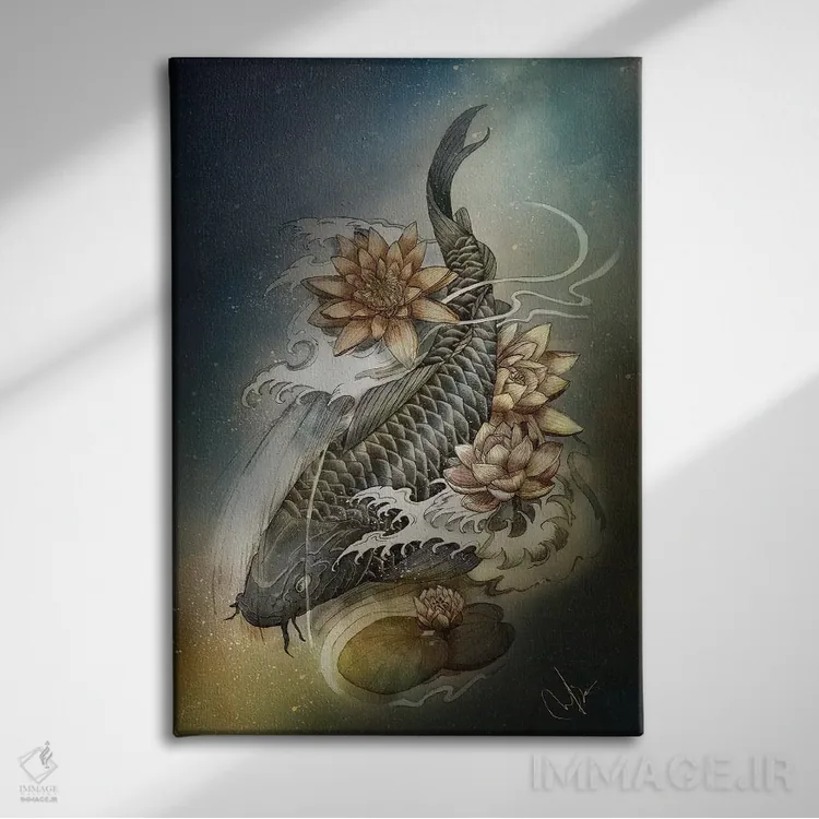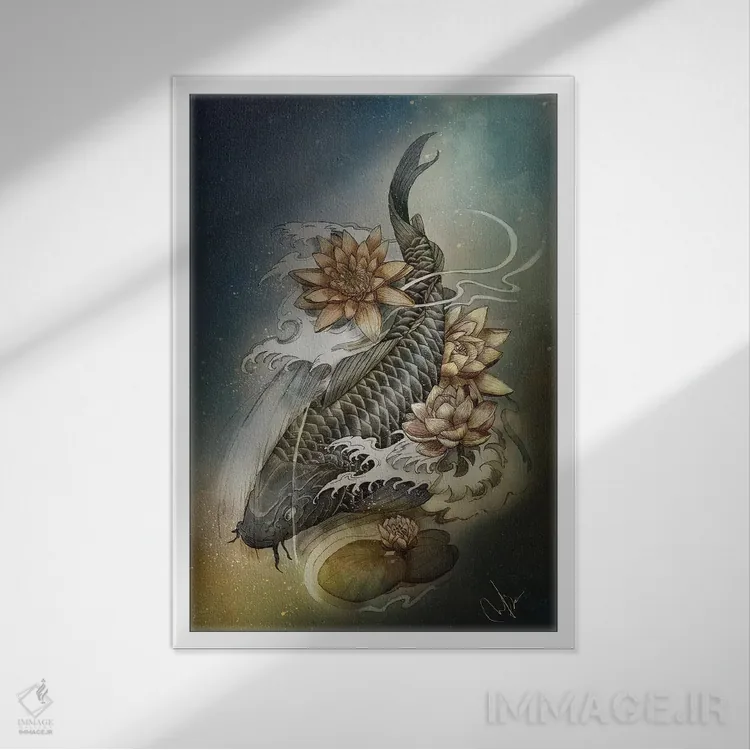 برای دیواری که میخواهید نرمتر دیده شود، «کوی و لوتوس (ماهی کوی و نیلوفر آبی)» اثرِ «مارین لوپ» فضا را نرمتر و مهماننوازتر میکند؛ برای کنار میز آرایش یا کنسول انتخابی خوشسلیقه است. همیشه بهروز میماند و با فصلها خوب کنار میآید.