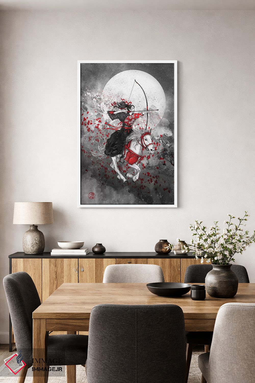 تابلو دکوراتیو یابوسامه اثر مارین لوپ - نمای قاب‌دار سفید