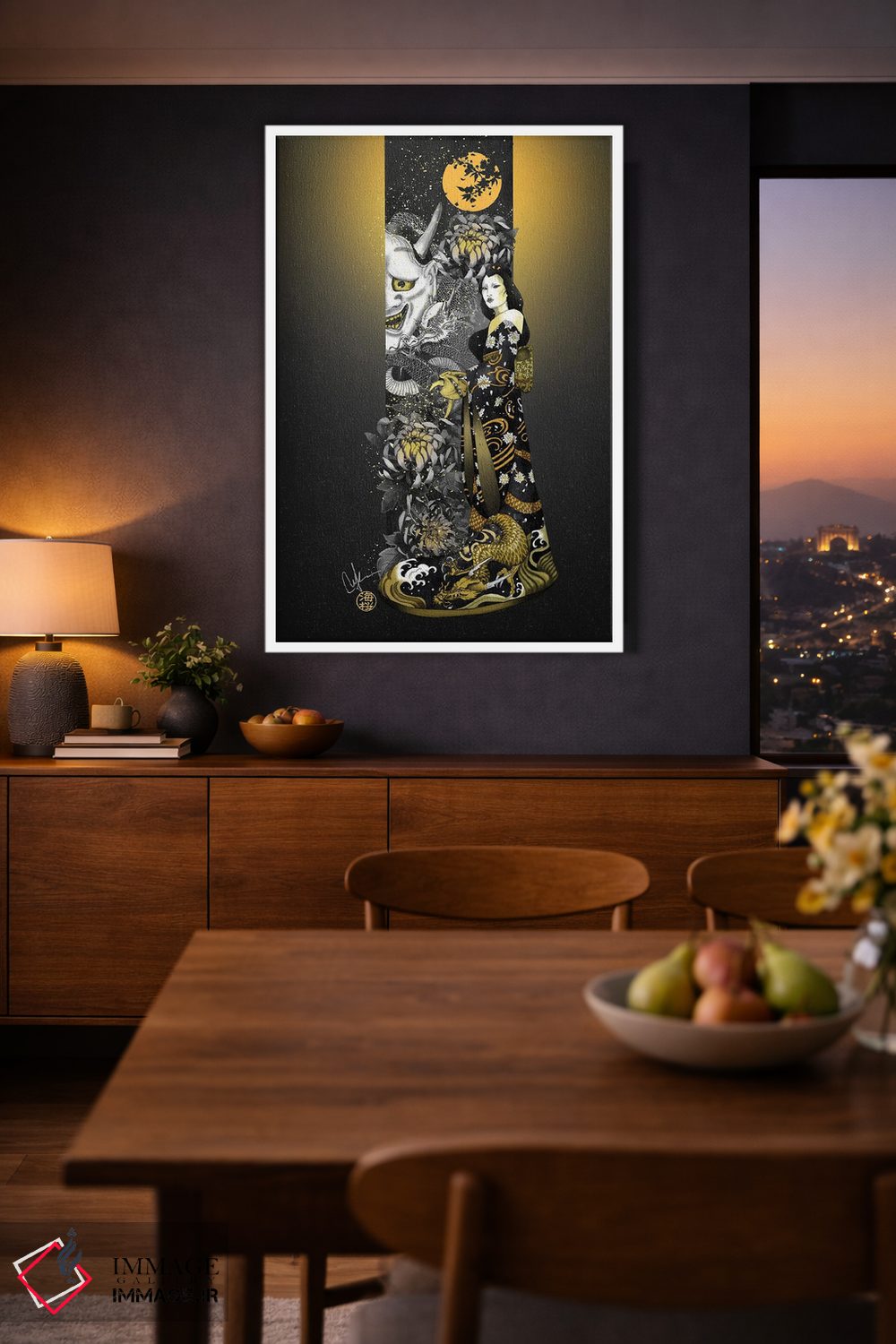 بوم گالری ایماژ نسخهی چیدماناتیوِ حرفهای از یک اثر هنری است؛ روی کنواس سفیدِ یکدست و بدون اسید با اجرای چاپ هنریِ دقیق به روش جیکلی (Giclée) با سیستم رنگ Epson UltraChrome HDR برای نیمسایههای نرمتر و سایههای جزئیتر؛ روی دیوار، کار یکدستتر و خوشکیفیتتر دیده میشود.