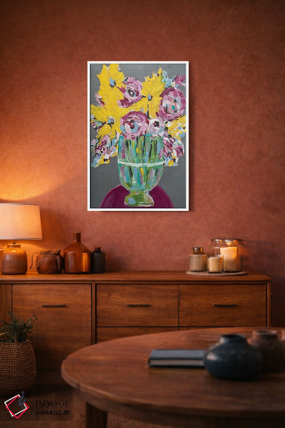 تابلو دکوراتیو روی خوش خورشید اثر ملانی سان شاین آندروود - نمای روبه‌رو روی دیوار