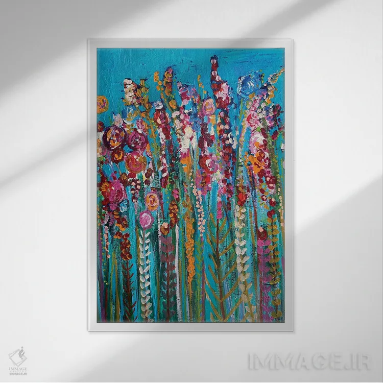 براساس پالت ترکیبی اثر، قاب تیک گرم (چوبی) پیشنهاد اول است و مشکی مات (فریم متوسط) مکمل. برای سفارشهای پروژهای با ابعاد و قابهای اختصاصی با ایماژ در تماس باشید.