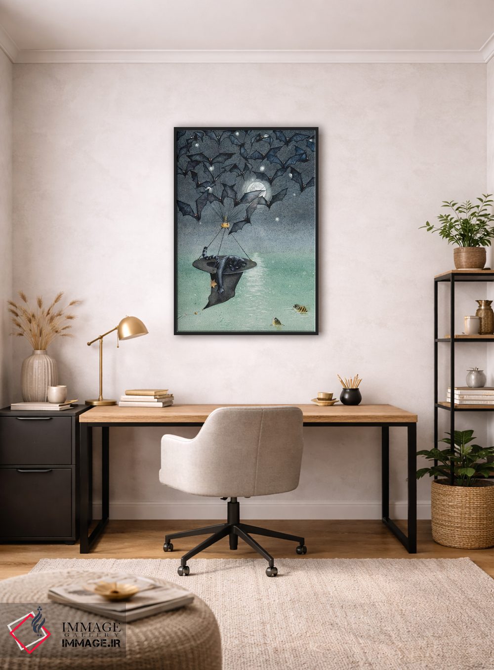 بوم گالری ایماژ نسخهی دکوراتیوِ سطحبالا از یک اثر هنری است. روی کنواس سفیدِ یکدست و بدون اسید با اجرای چاپ هنری جیکلی (Giclée) برای آرتپرینتهای جدی با رنگدانههای آرشیوی و سیستم رنگ دقیق؛ در گذارهای رنگی، لطافت بیشتری حس میشود. اسمبل تمیز و آمادهی نصب؛ کشیدگی استاندارد روی کلاف و یراق مناسب.