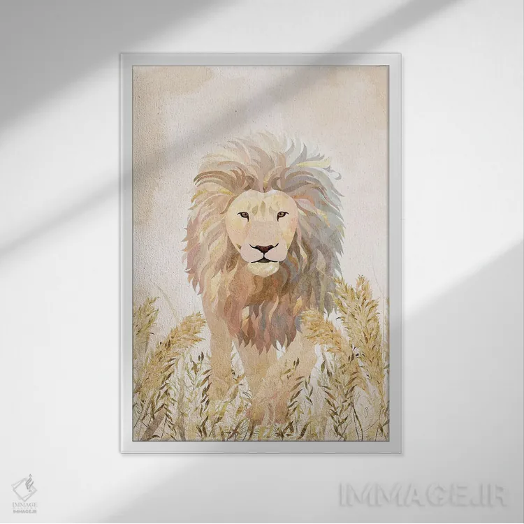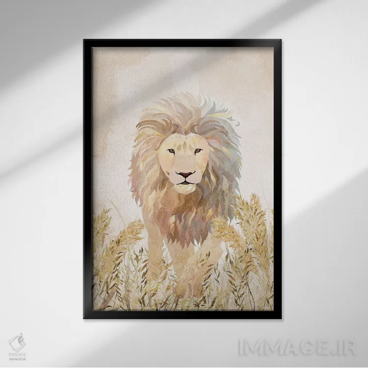 تابلو دکوراتیو شیر طلایی در علفزار اثر سارا مانوفسکی
