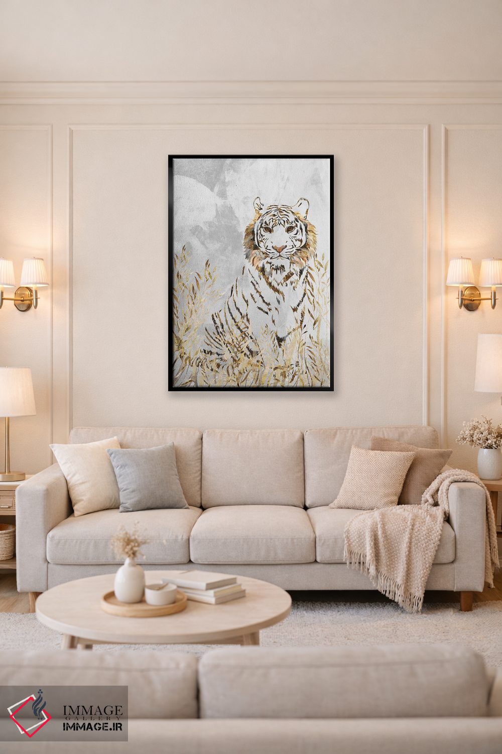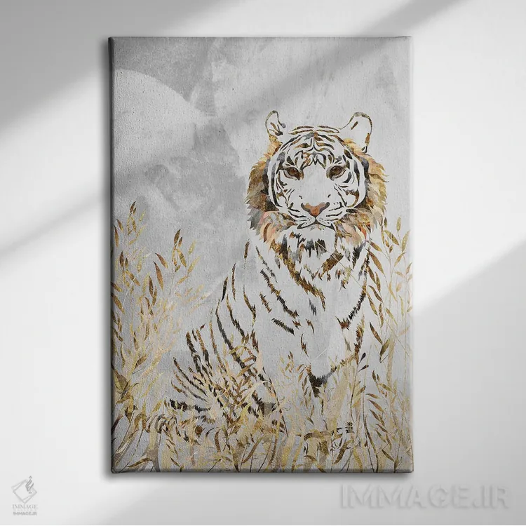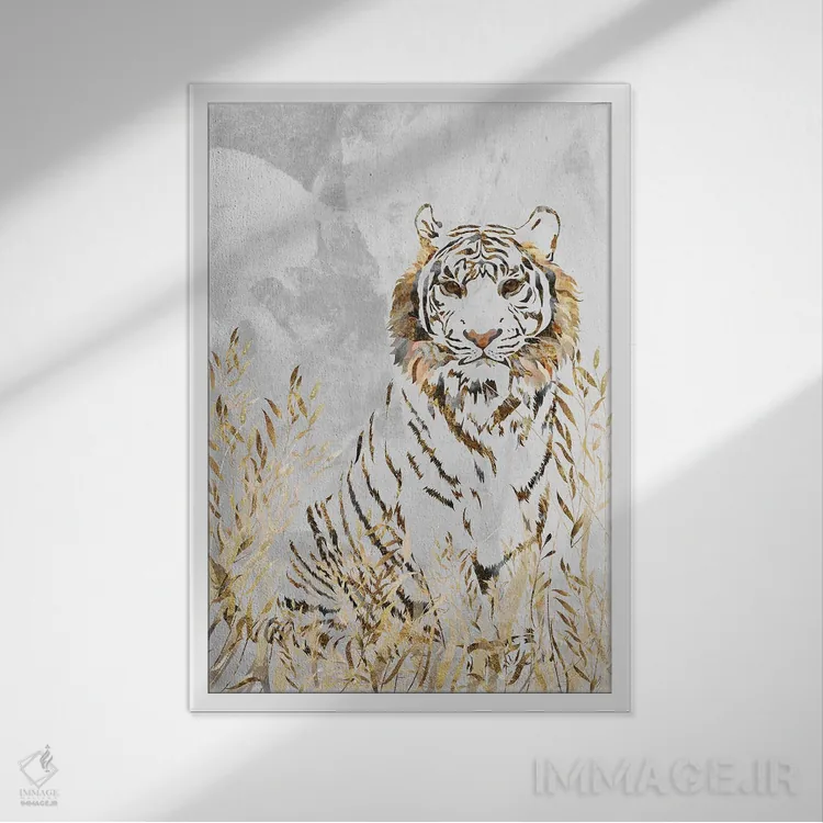 تابلو دکوراتیو ببر سفید و طلایی اثر سارا مانوفسکی