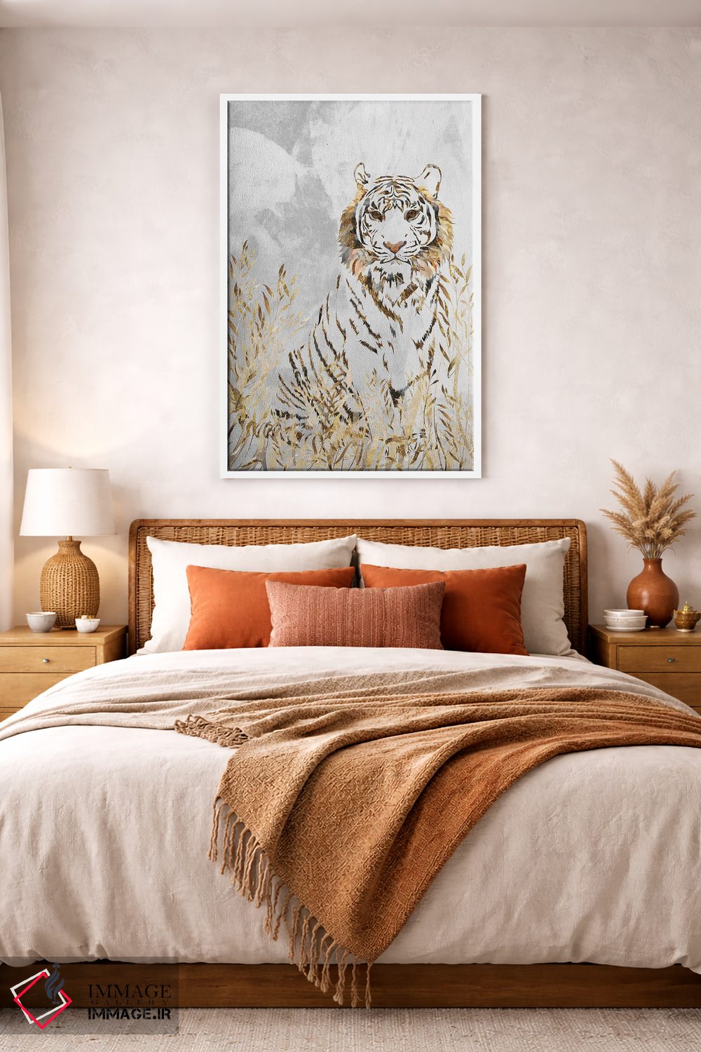 اگر میخواهید دیوار کمی سرزندگیِ محترمانه داشته باشد، «ببر سفید و طلایی» اثرِ «سارا مانوفسکی» بدون کودکانه شدن، بازیگوش و خوشپرداخت میماند، برای فضاهای روستیک یا بوهو گزینهٔ مناسبیست. در کنار گیاهان و نور طبیعی، جذابتر هم میشود.