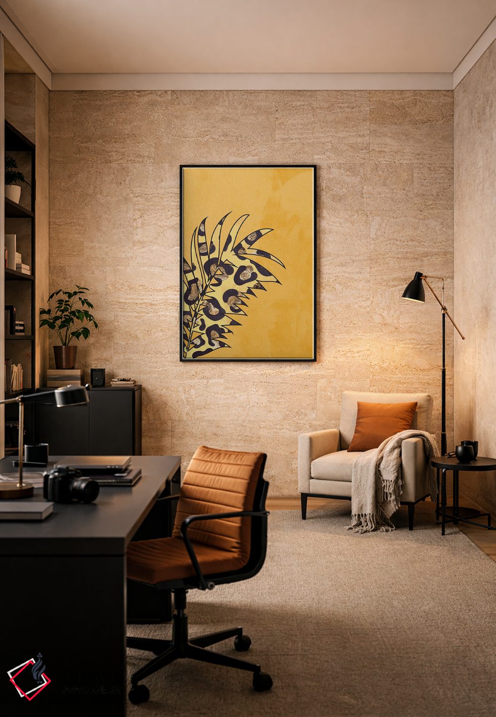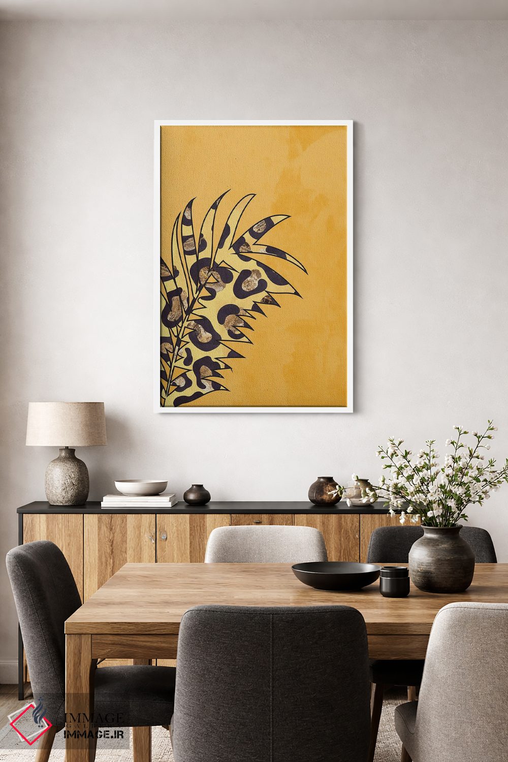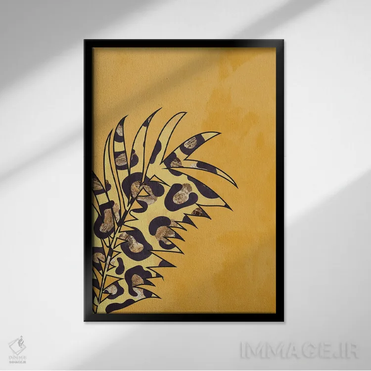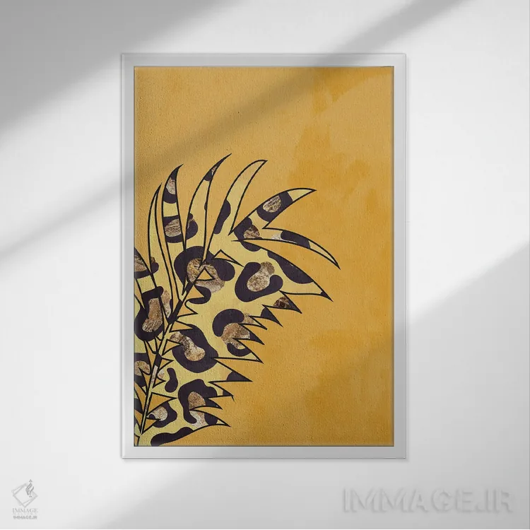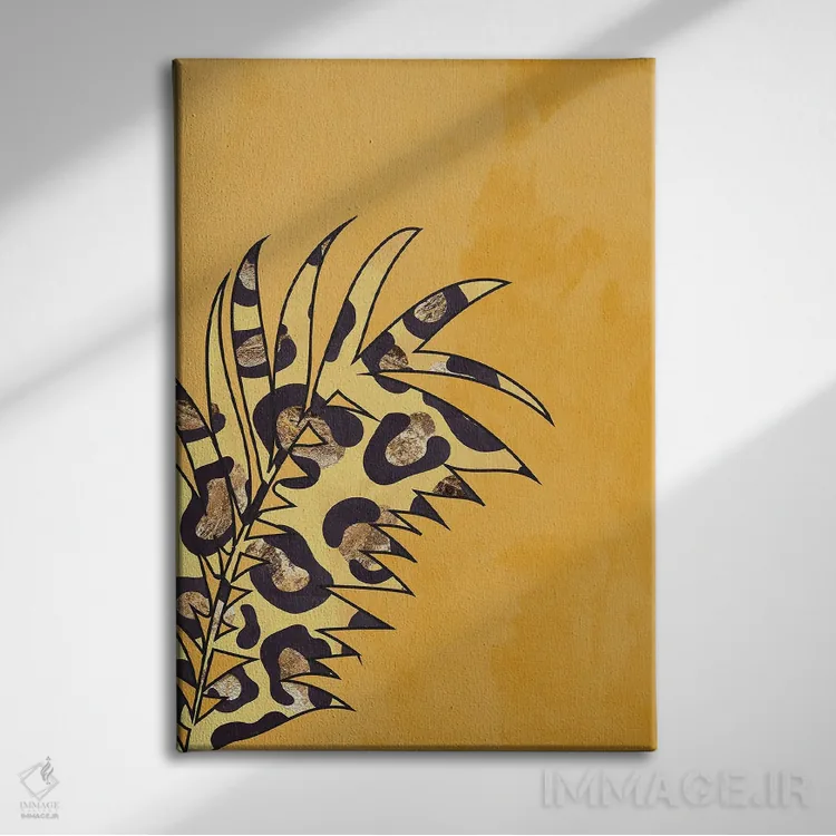 تابلو مینیمال برگ با نقش پلنگی زرد اثر سارا مانوفسکی