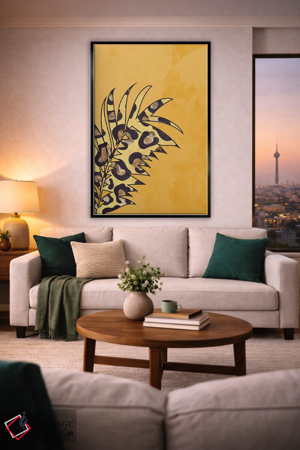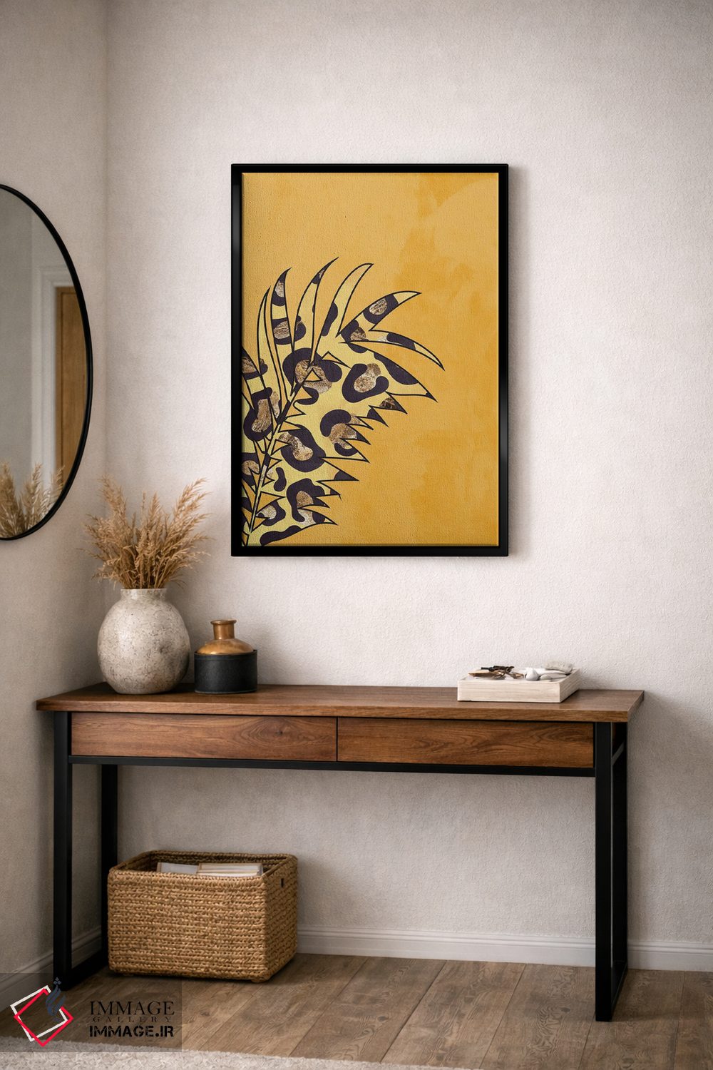 براساس پالت گرم اثر، قاب تیک گرم (چوبی) پیشنهاد اول است و مشکی مات (فریم متوسط) مکمل. برای سفارشهای پروژهای با ابعاد و قابهای اختصاصی با ایماژ در تماس باشید.