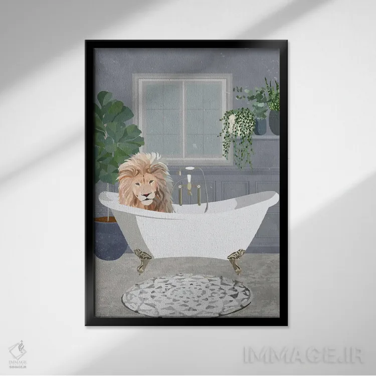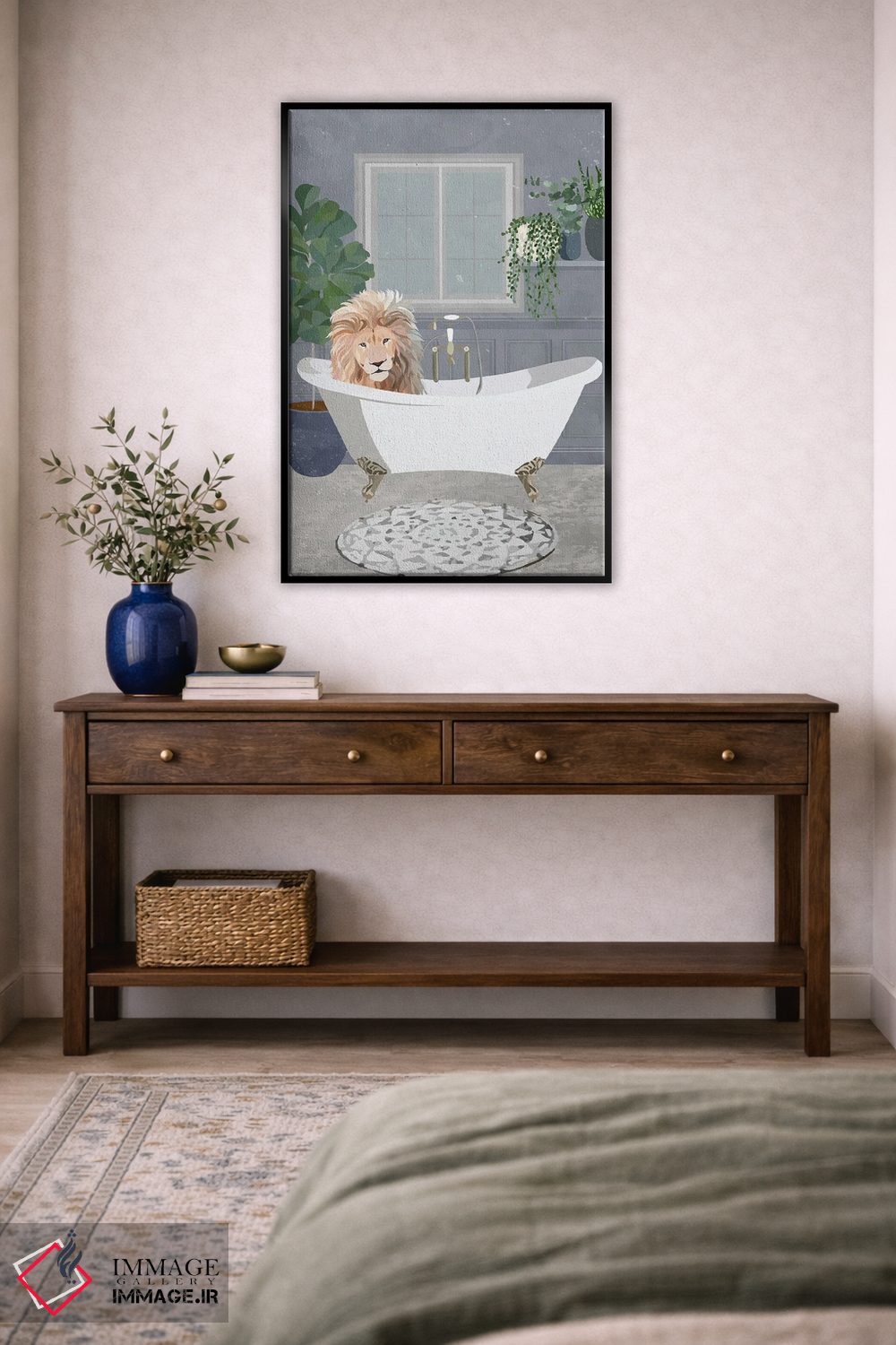 تابلو دکوراتیو شیر در حال حمام کردن اثر سارا مانوفسکی