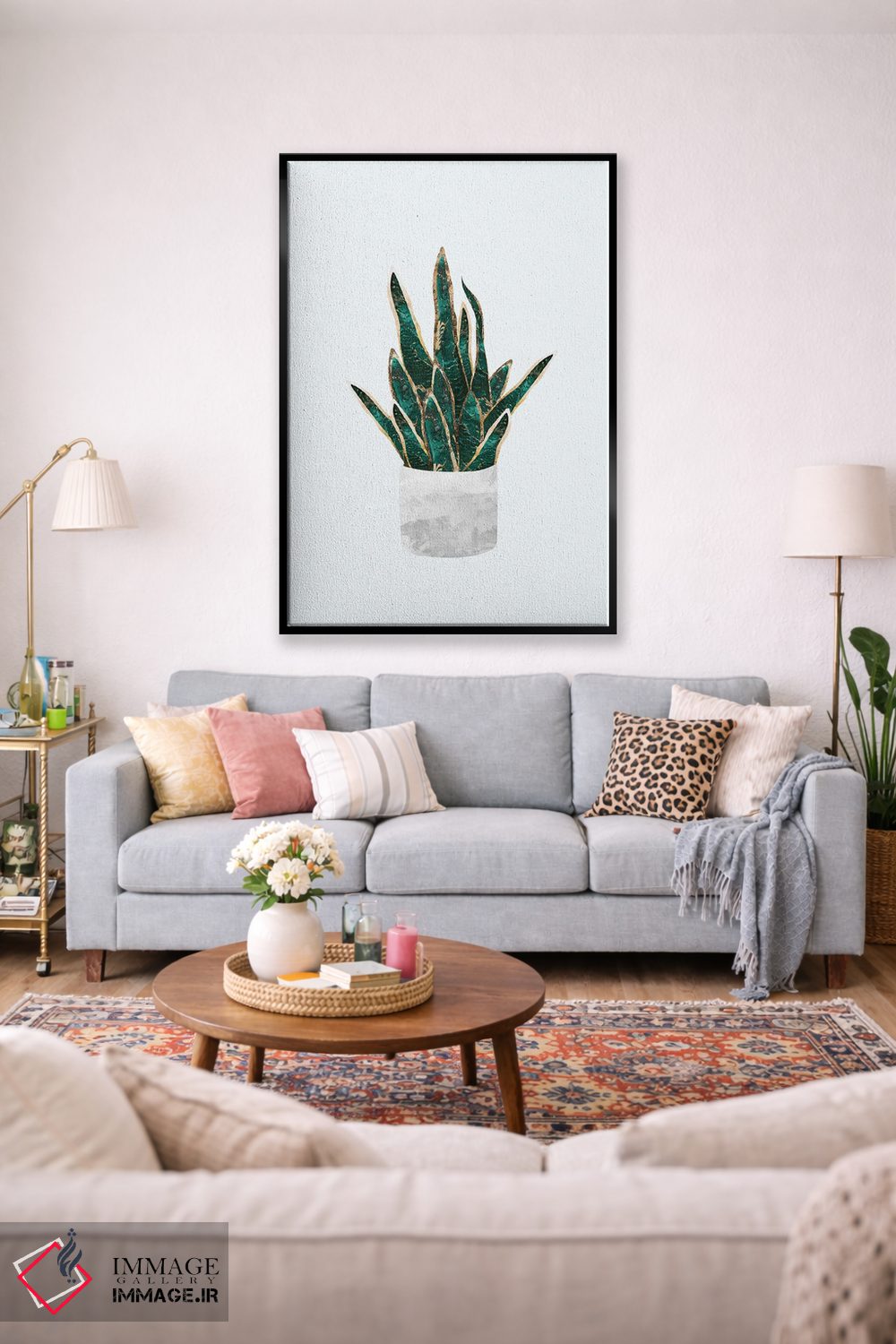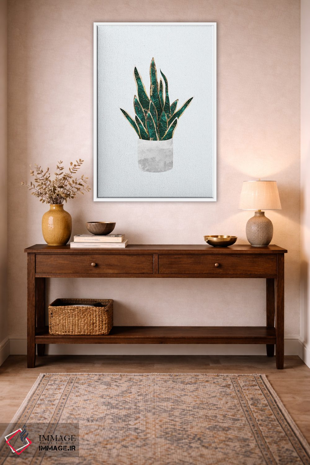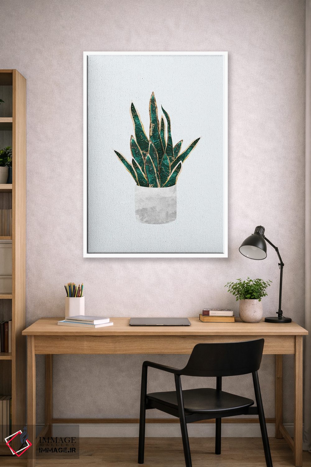 برای فضاهایی که به لطافت نیاز دارند، «سانسوریا فلزی (گیاه مار)» اثرِ «سارا مانوفسکی» تعادل رنگیِ لطیفی به چیدمان میدهد؛ برای اتاق خواب انتخابی خوشسلیقه است. با قاب روشن یا چوبی، حس طبیعیتری پیدا میکند.