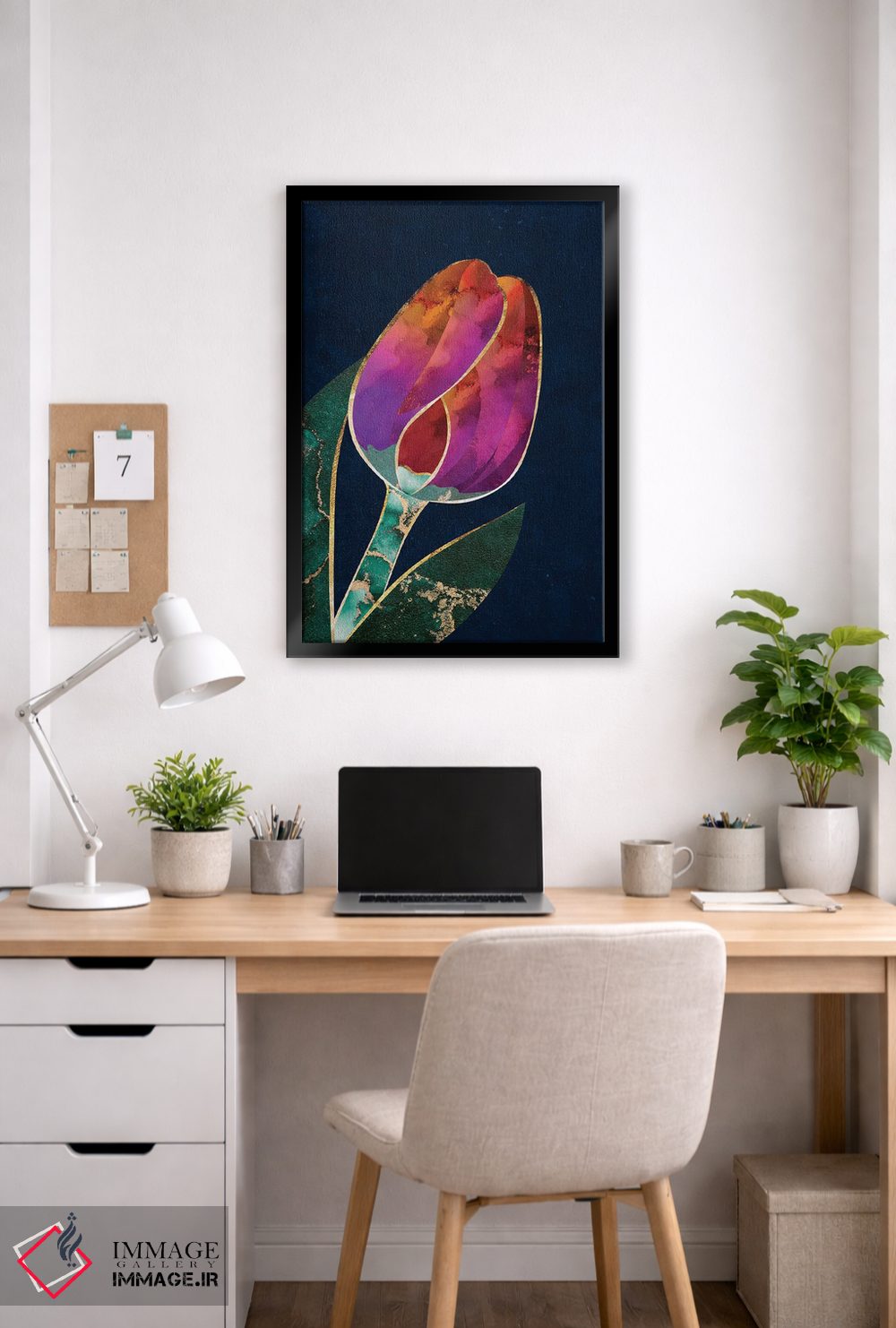 اگر دوست دارید دیوار روشنتر و آرامتر دیده شود، «لاله فلزی» اثرِ «سارا مانوفسکی» فضا را نرمتر و مهماننوازتر میکند، برای فضاهای بوهمی گزینهٔ مناسبیست. جزئیاتش از نزدیک هم ارزش تماشا دارد.
