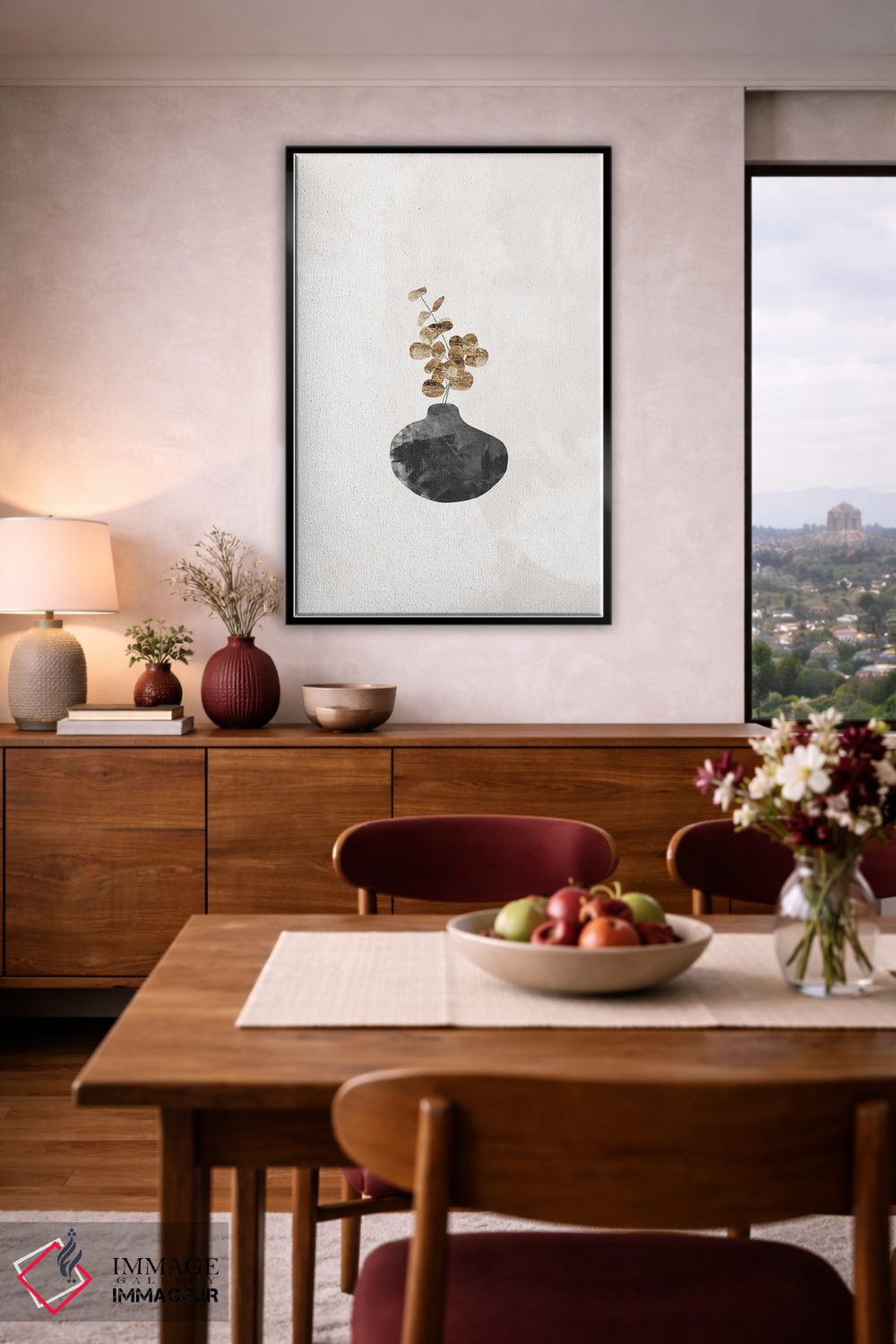 ساختار بوم گالری ایماژ طوری است که اثر روی دیوار «پرداختشده» و حرفهای دیده شود—نه پرزرقوبرقِ بیپایه؛ بلکه دقیق و خوشپرداخت. بافت ظریف کنواس باعث میشود حس اثر هنری را در نگاه نزدیک نگه میدارد بهخصوص وقتی نور موضعی ملایم داشته باشید. قابپذیری کمک میکند تا بتواند اثر را نقطهٔ کانونی محیط کند. در نهایت، نتیجه چیزی شبیه تفاوت نسخهی معمولی با نسخهی باکیفیتتر است: نه رنگِ بیشتر، بلکه پرداخت بهتر؛ اگر فضا کمینهگرا است، همین پرداخت تمیز کافی است.