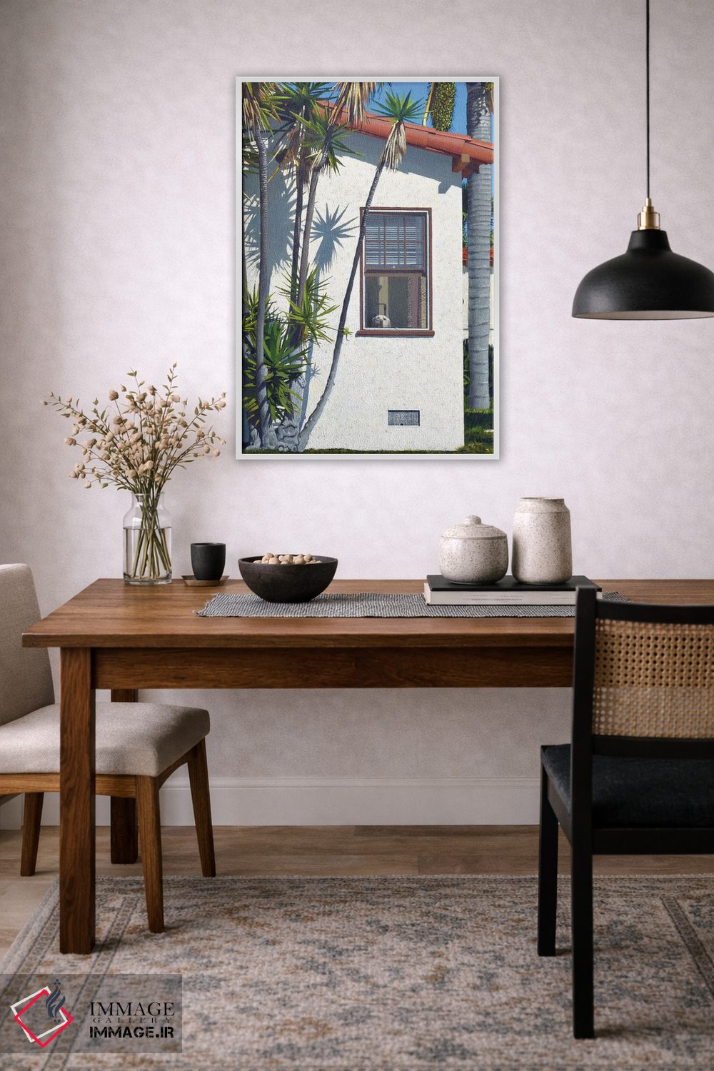 بوم گالری ایماژ نسخهی دکوراتیوِ سطحبالا از یک اثر هنری است. روی کنواس بدون اسید با بافت ظریف و یکنواخت با چاپ هنریِ دقیق (Giclée) برای گذارهای نرمتر و وضوح بالاتر با سیستم رنگ Epson UltraChrome HDR برای نیمسایههای نرمتر و سایههای جزئیتر؛ این ترکیب باعث میشود گذارهای رنگی نرمتر و بافتها خواناتر شوند. تابلو پس از آمادهسازی روی کلاف کشیده میشود و نصب آن ساده و بیدردسر است.