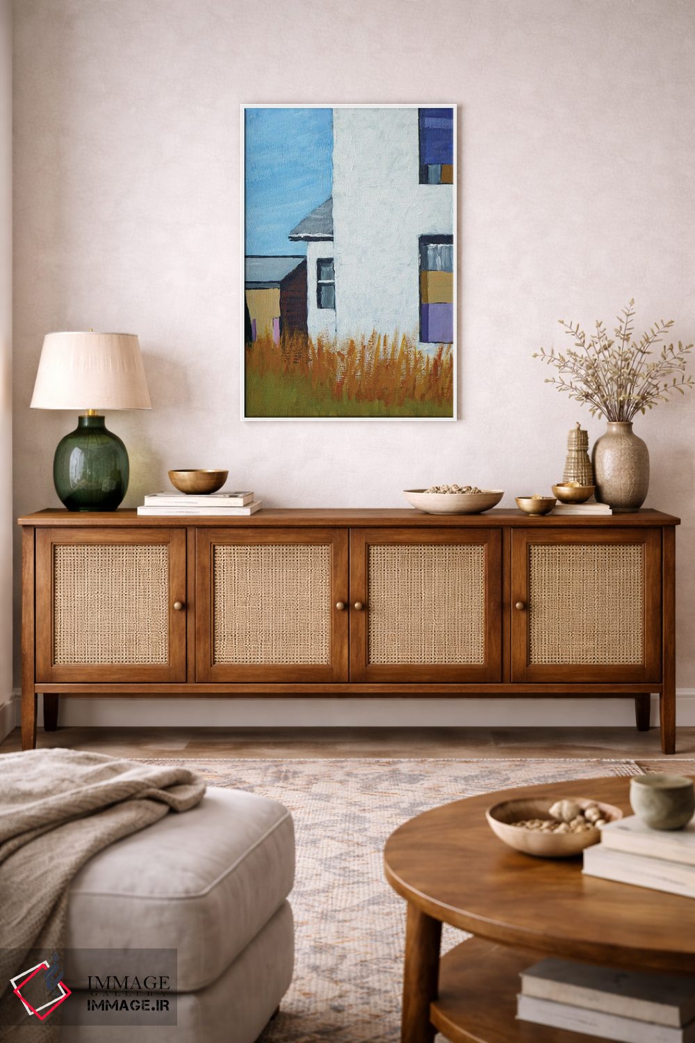 براساس پالت ترکیبی اثر، قاب تیک گرم (چوبی) پیشنهاد اول است و مشکی مات (فریم متوسط) مکمل. برای سفارشهای پروژهای با ابعاد و قابهای اختصاصی با ایماژ در تماس باشید.