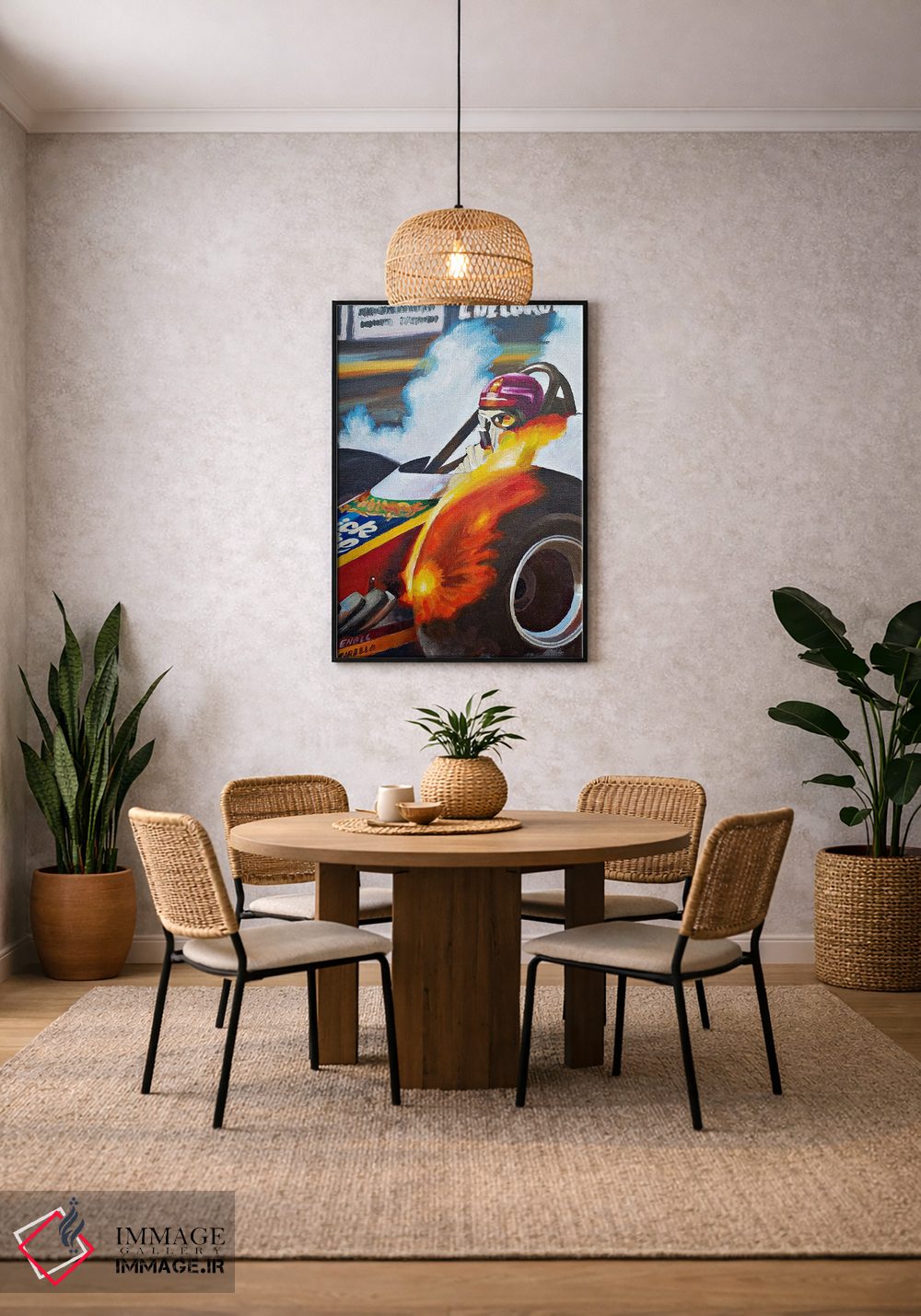 ساختار بوم گالری ایماژ طوری است که اثر روی دیوار «پرداختشده» و حرفهای دیده شود—نه پرزرقوبرقِ بیپایه؛ بلکه دقیق و خوشپرداخت. بافت ظریف کنواس باعث میشود حس اثر هنری را در نگاه نزدیک نگه میدارد بدون اغراق؛ فقط دقیقتر. با قابپذیری، میتواند اثر را نقطهٔ کانونی محیط کند بهخصوص وقتی نور موضعی ملایم داشته باشید. این کیفیت برای چیدمانهای دقیقتر و پروژههای حرفهای خودش را بهتر نشان میدهد؛ و اگر بخواهید، میتوان چیدمان را برای گالریوال هم پیشنهاد داد. برای فضاهای کوچک، انتخاب قاب ساده و یک نور موضعی ملایم نتیجه را حرفهایتر میکند.