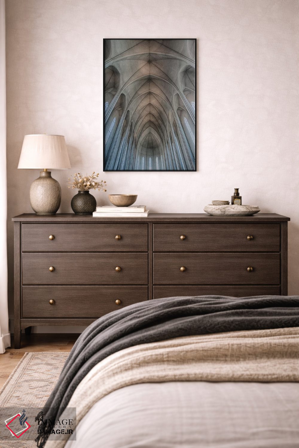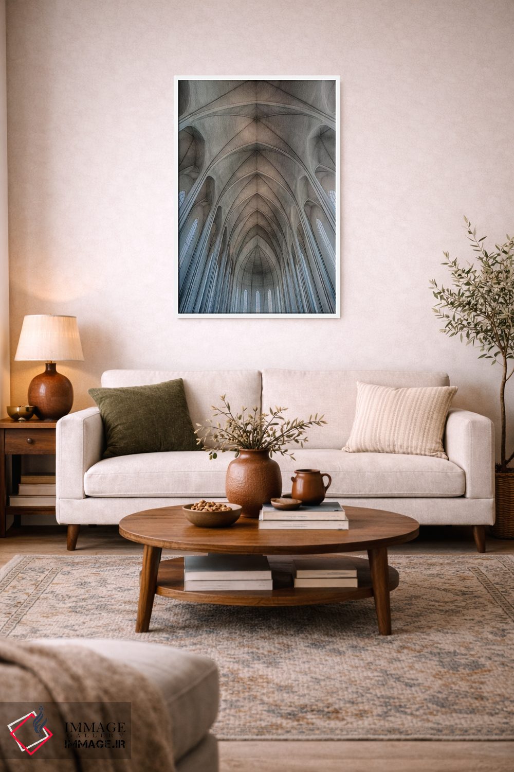 «Reykjavik، Ribbed Vaults In The Modern Cathedral Of Hallgrimskirkja.، ایسلند، ریکیاویک، طاقهای راهراه در کلیسای مدرن هالگریمسکیرکیا» اثرِ «مارک ویلیفورد» میتواند در کنار بتن، فلز یا چوب عالی بنشیند؛ برای اتاق جلسات پیشنهاد شود. فضا را شلوغ نکند؛ فقط ساختار میدهد.