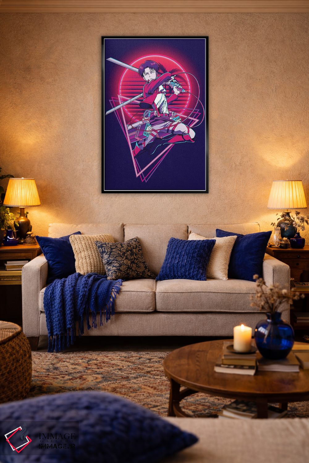 «حمله به تایتان (انیمه)» اثرِ «مونیر وانیاک» با حالوهوای هنری، انرژی و روایت تصویری را به دیوار میآورد؛ مناسب اتاق نوجوان یا استودیو.