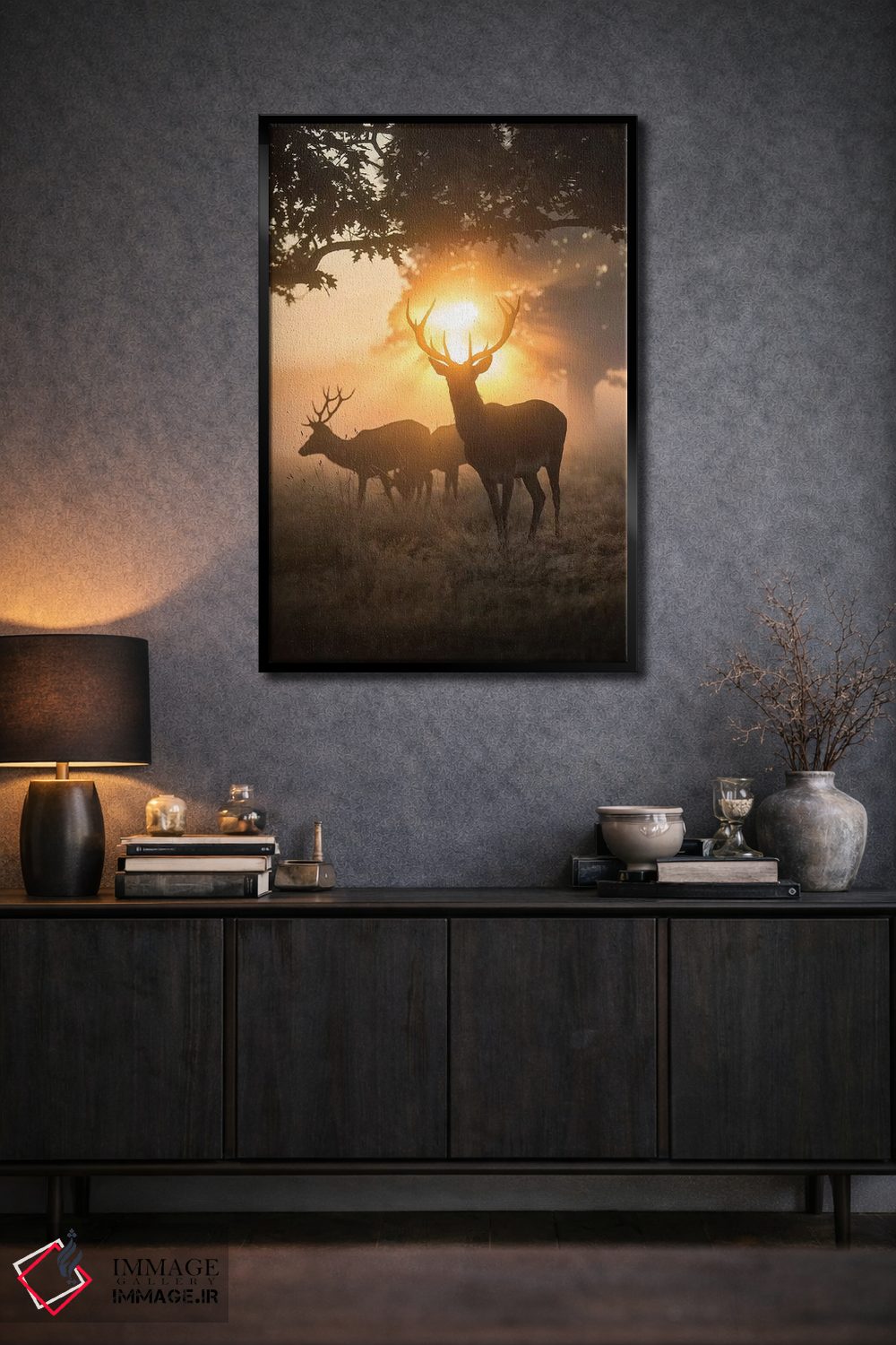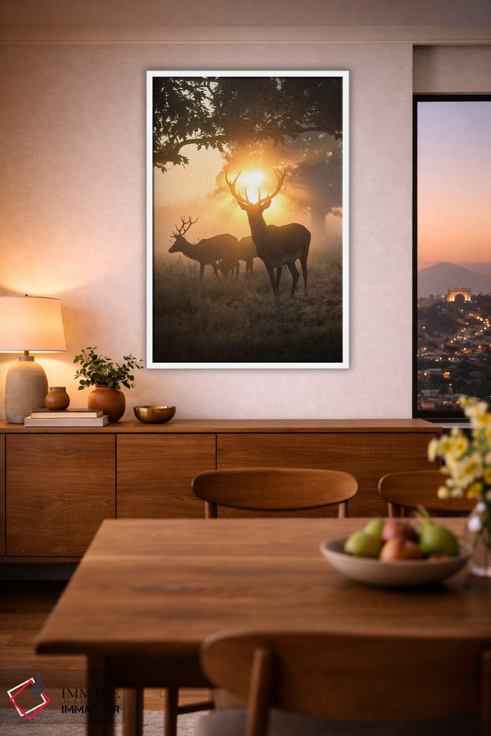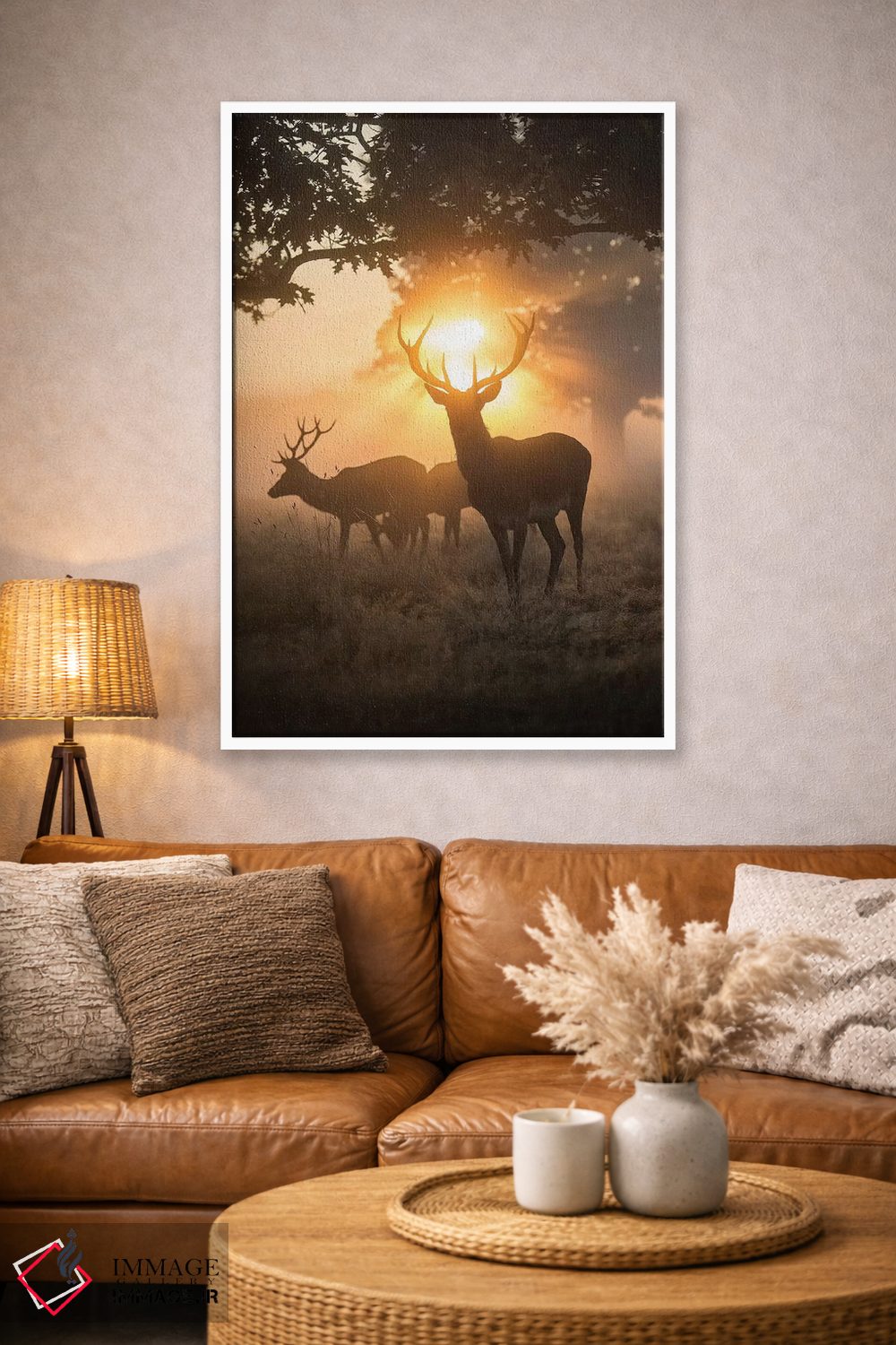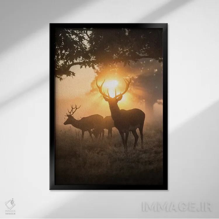براساس پالت گرم اثر، قاب بلوط روشن (چوبی) پیشنهاد اول است و استخوانی ملایم مکمل. برای سفارشهای پروژهای با ابعاد و قابهای اختصاصی با ایماژ در تماس باشید.